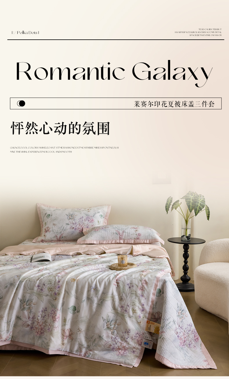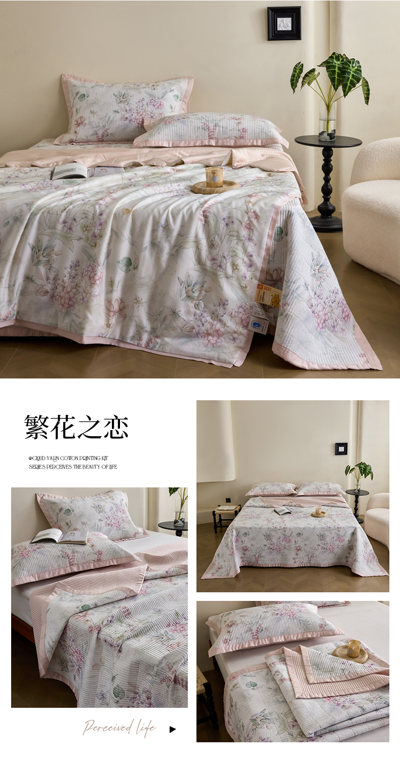 商品名称:黛舒家居2025新款天丝水洗印花夏被床盖三件套 繁花之恋