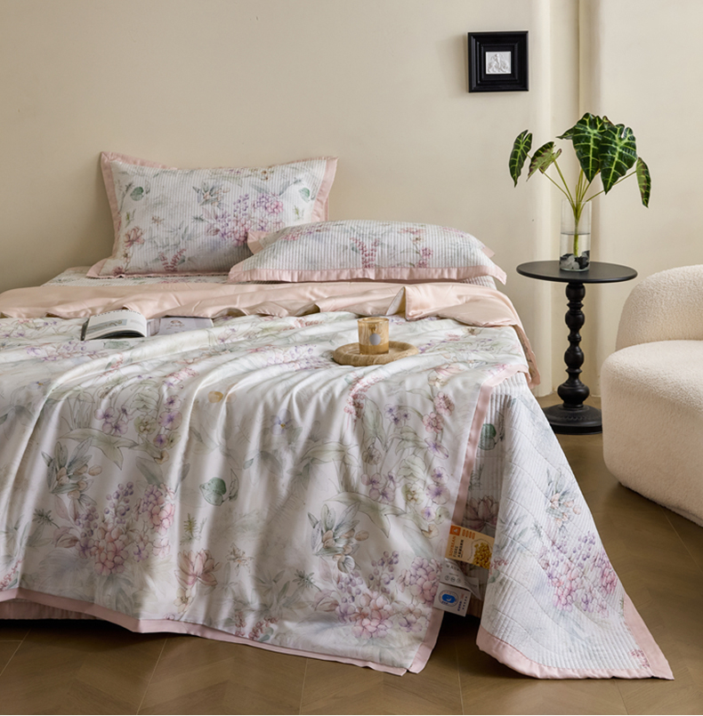 黛舒家居2025新款天丝水洗印花夏被床盖三件套 繁花之恋