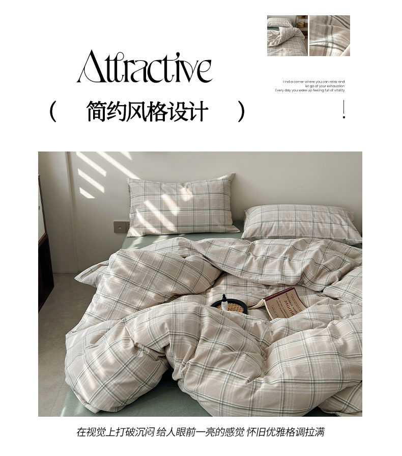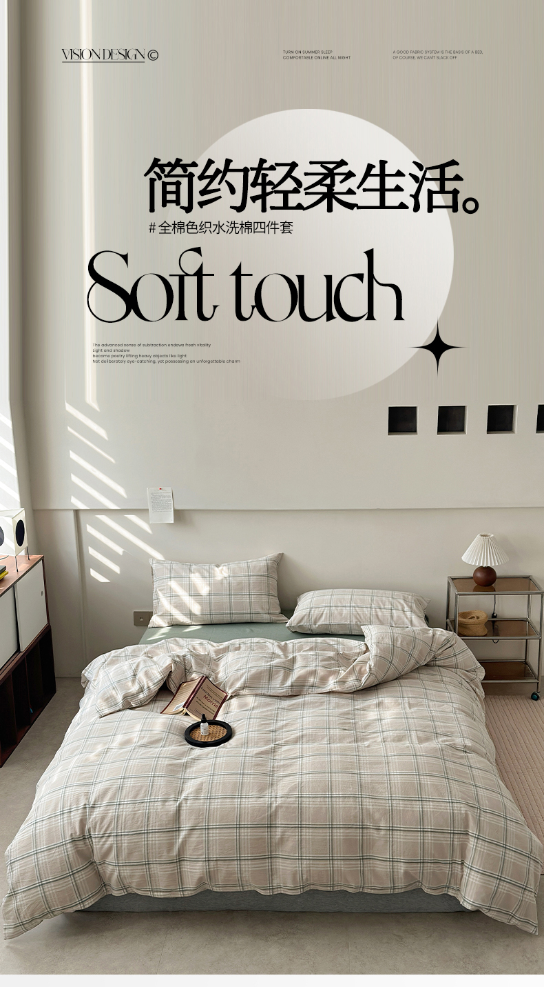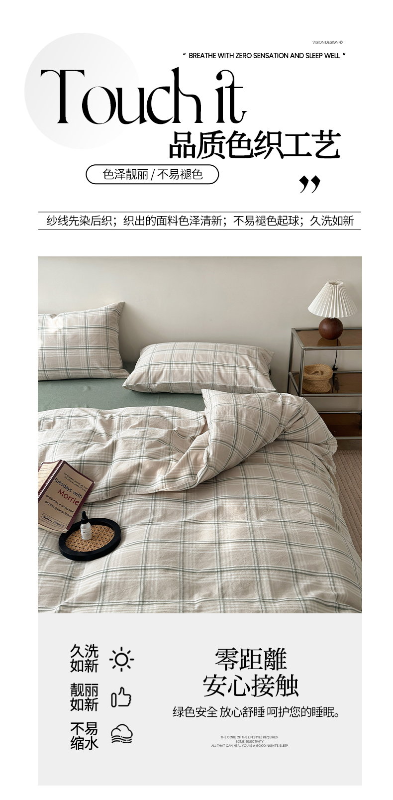 水洗的故事 2025新款全棉色织水洗棉四件套 绿韵