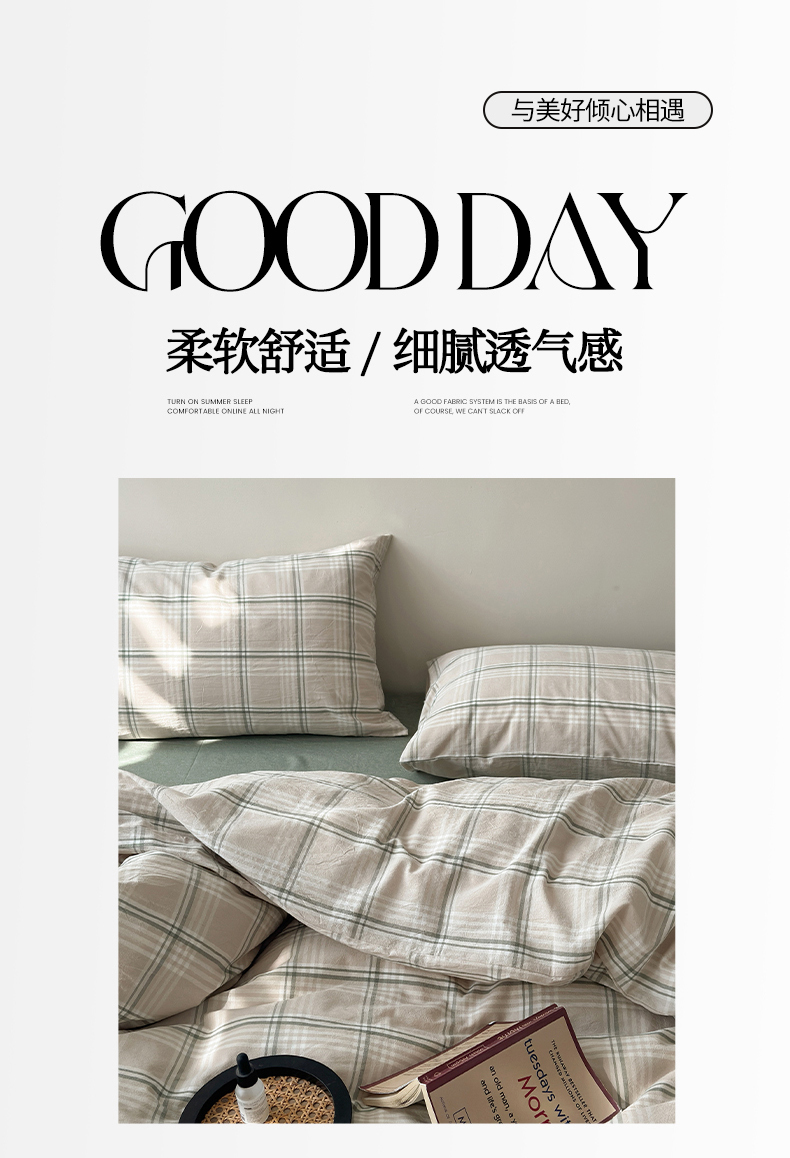 商品名称:水洗的故事 2025新款全棉色织水洗棉四件套 绿韵