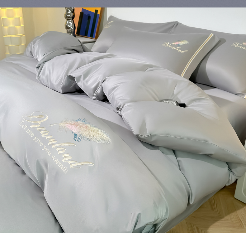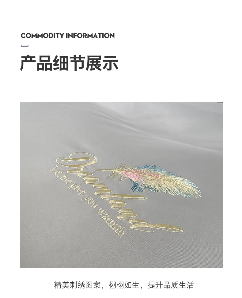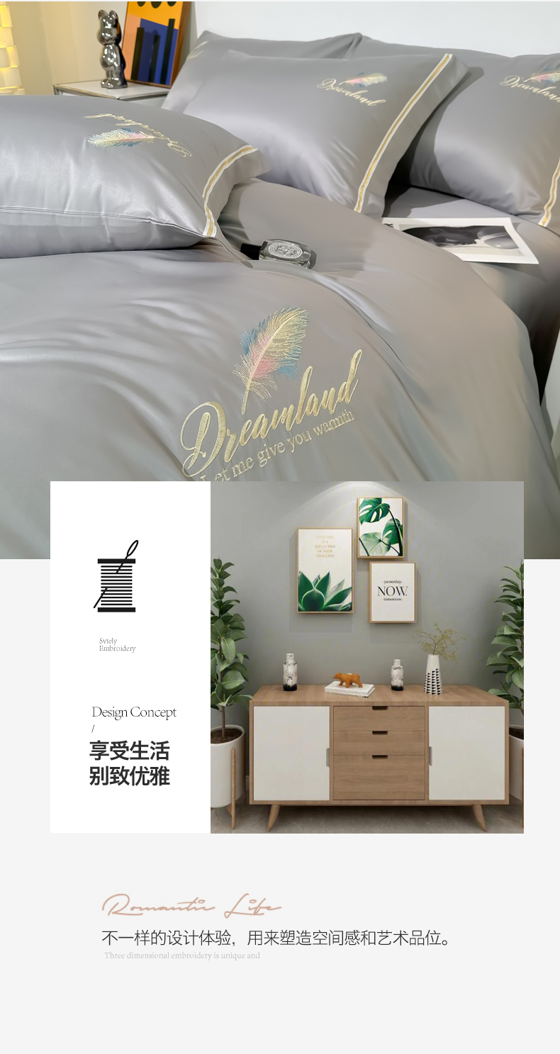 当前位置: 91家纺网 > 商品网购 > 床品套件 > 四件套 > 2025新款水洗冰丝刺绣四件套羽毛系列轻奢时尚北欧风床上用品学生宿舍三四件套 羽毛-高级灰