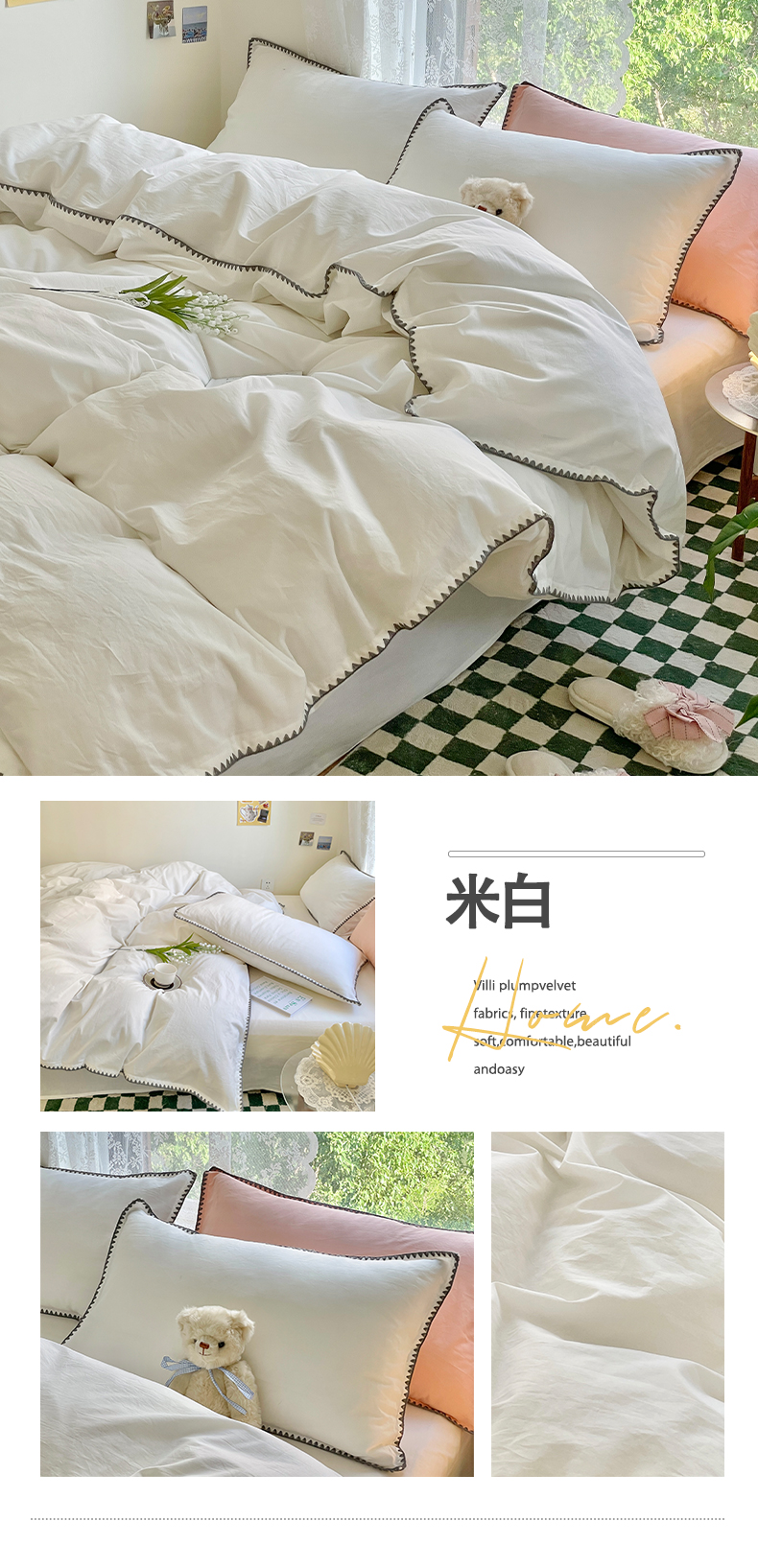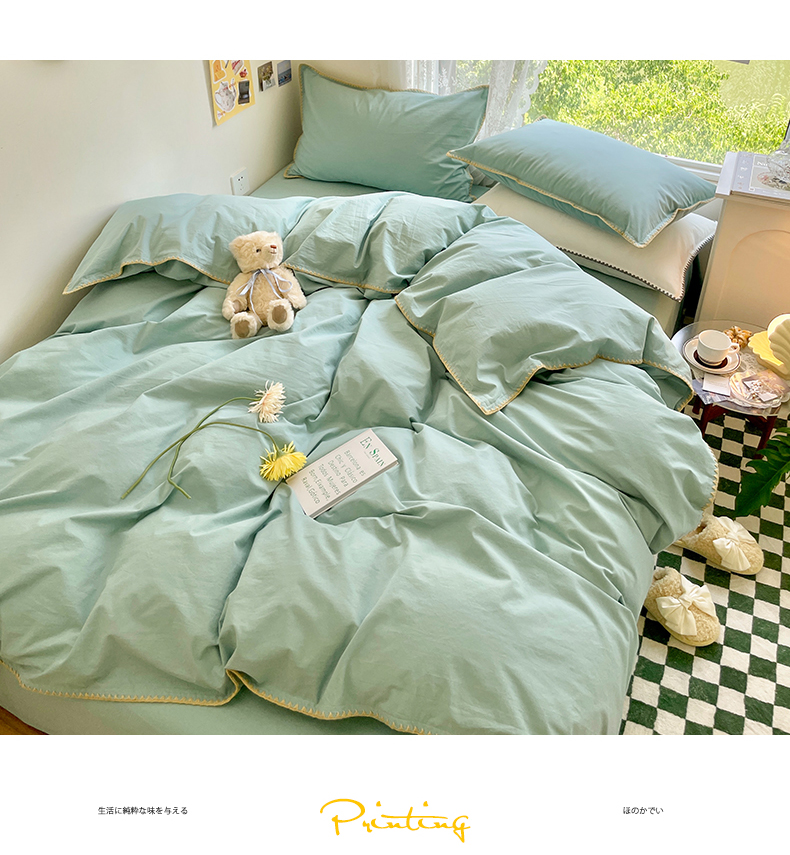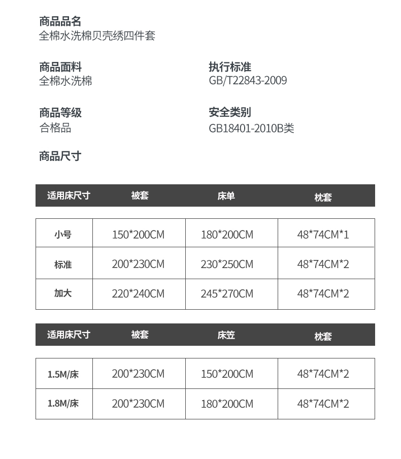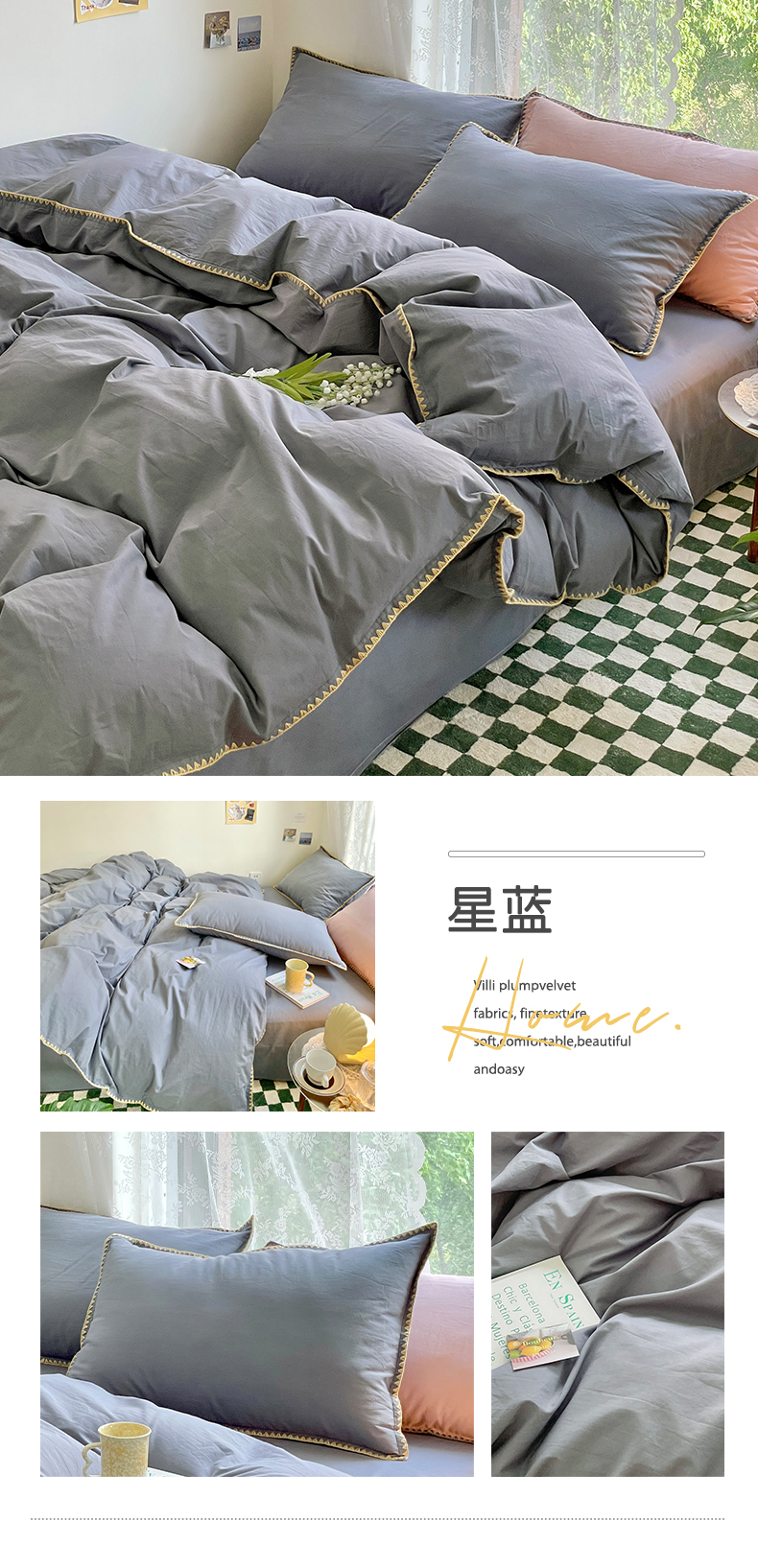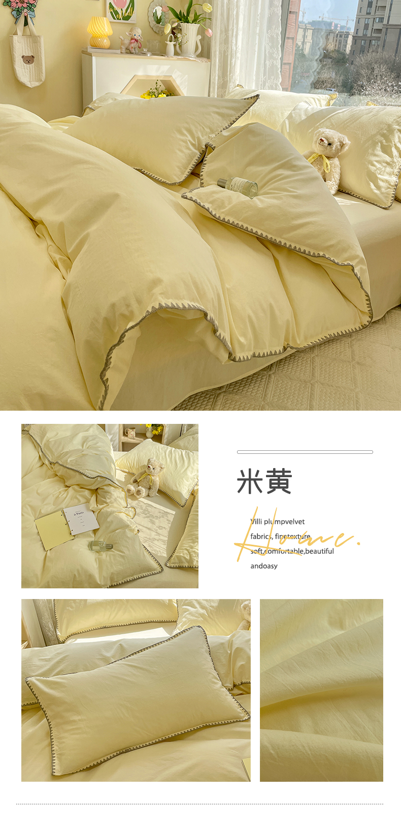 (总)瑞莱 2025新款全棉轻奢水洗棉贝壳绣四件套,豆沙,粉玉,米白,米黄,浅灰,浅蓝,深灰,深蓝,水绿,星蓝