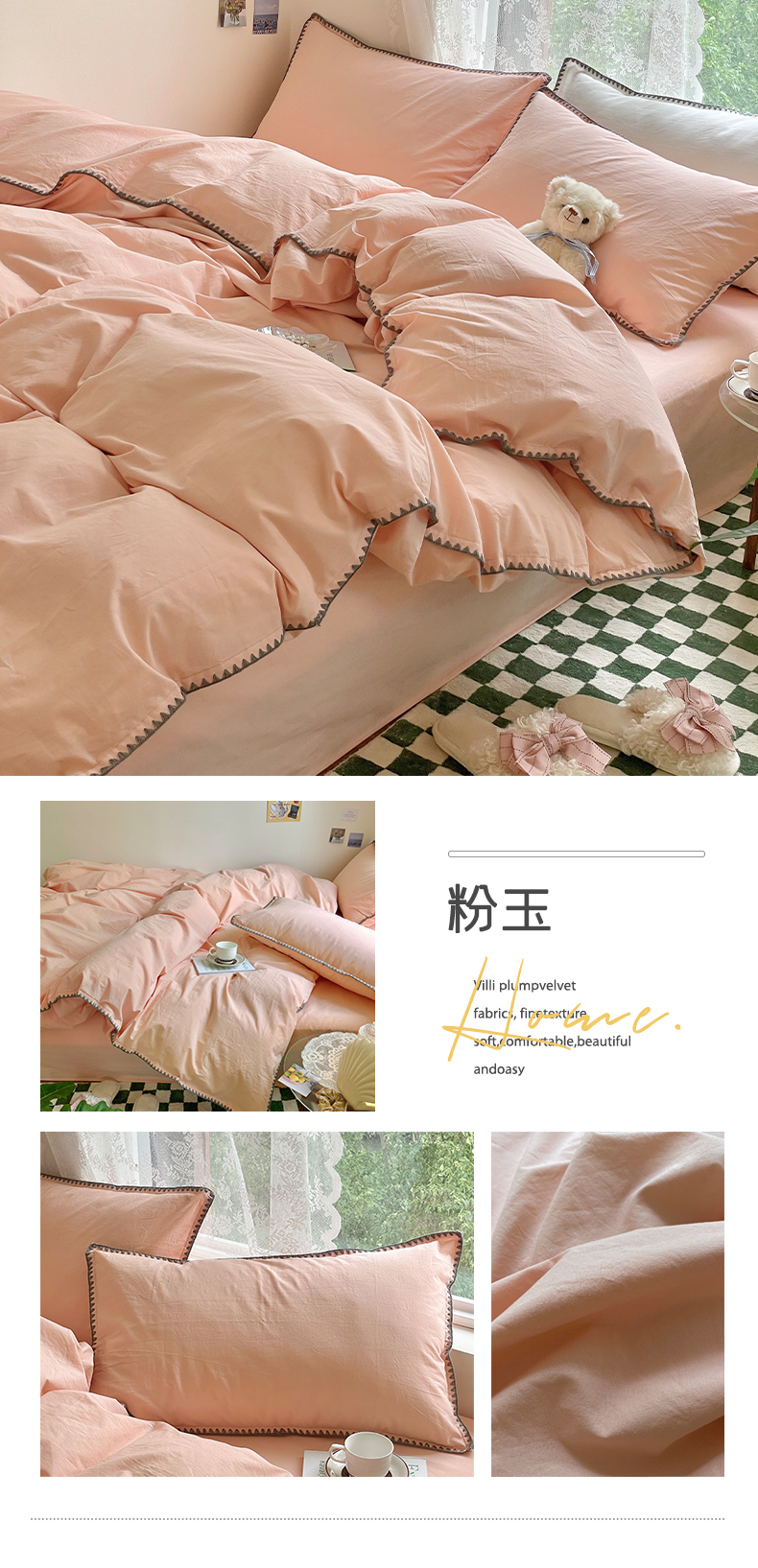 商品名称:瑞莱 2025新款全棉轻奢水洗棉贝壳绣四件套 粉玉
