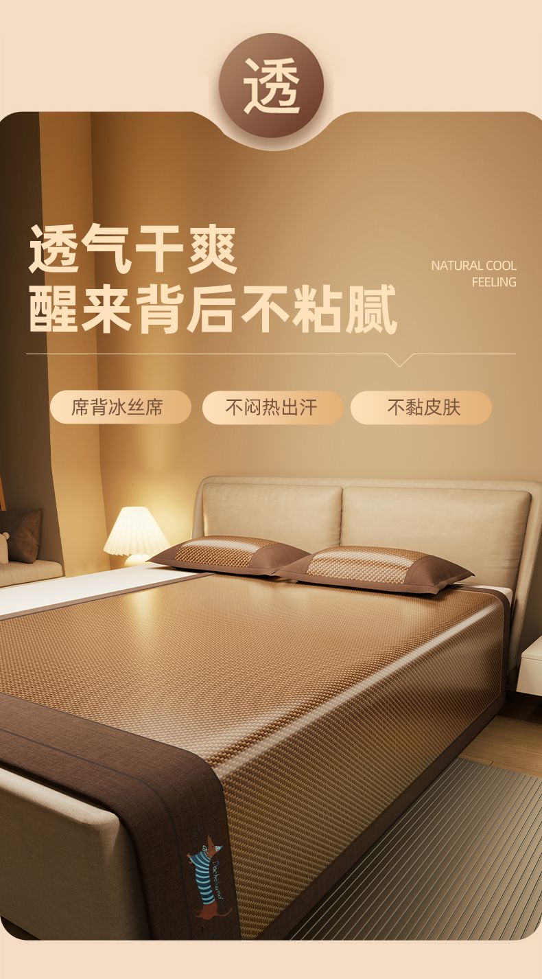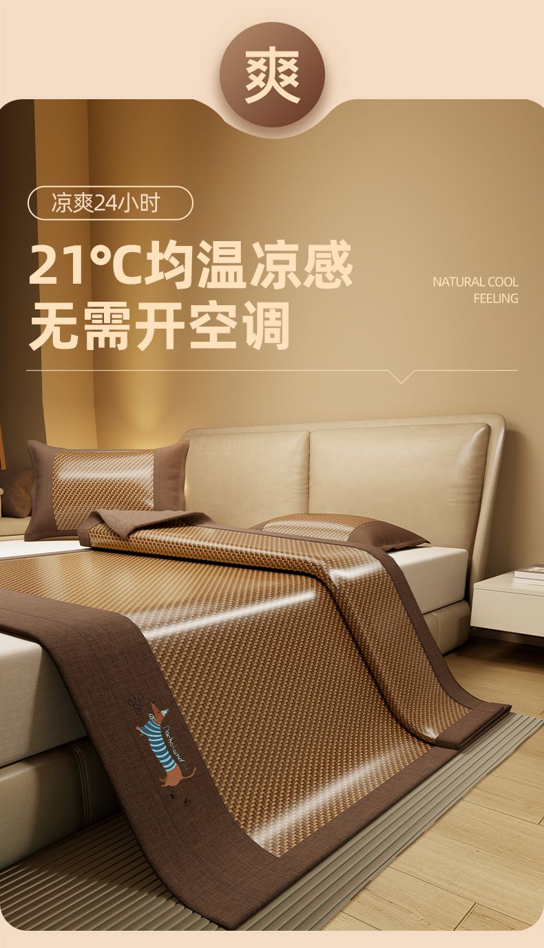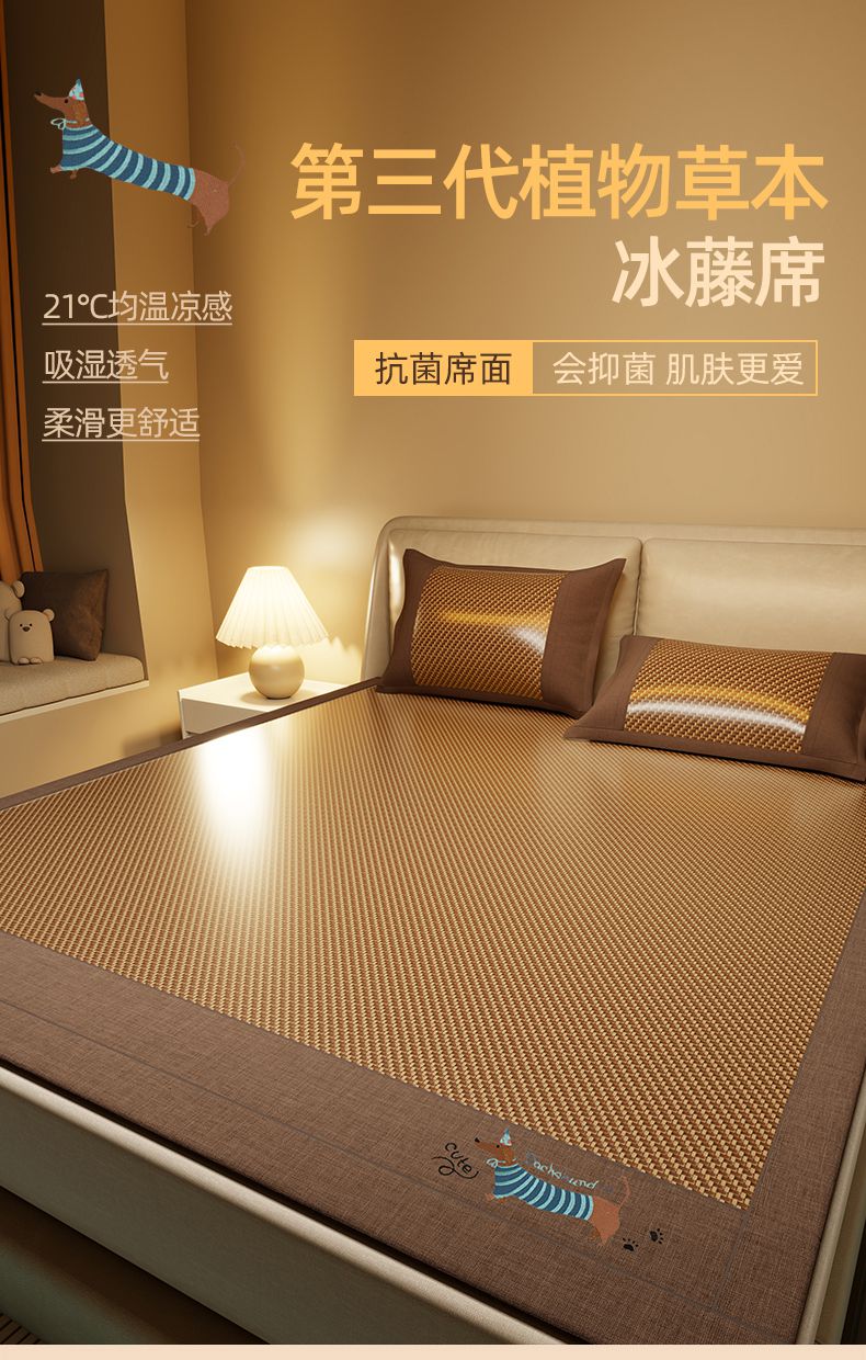 当前位置: 91家纺网 > 商品网购 > 床上用品 > 凉席 > 藤席 > 绒艺席业 2025新款抗菌刺绣凉感冰藤席 腊肠狗-深檀咖