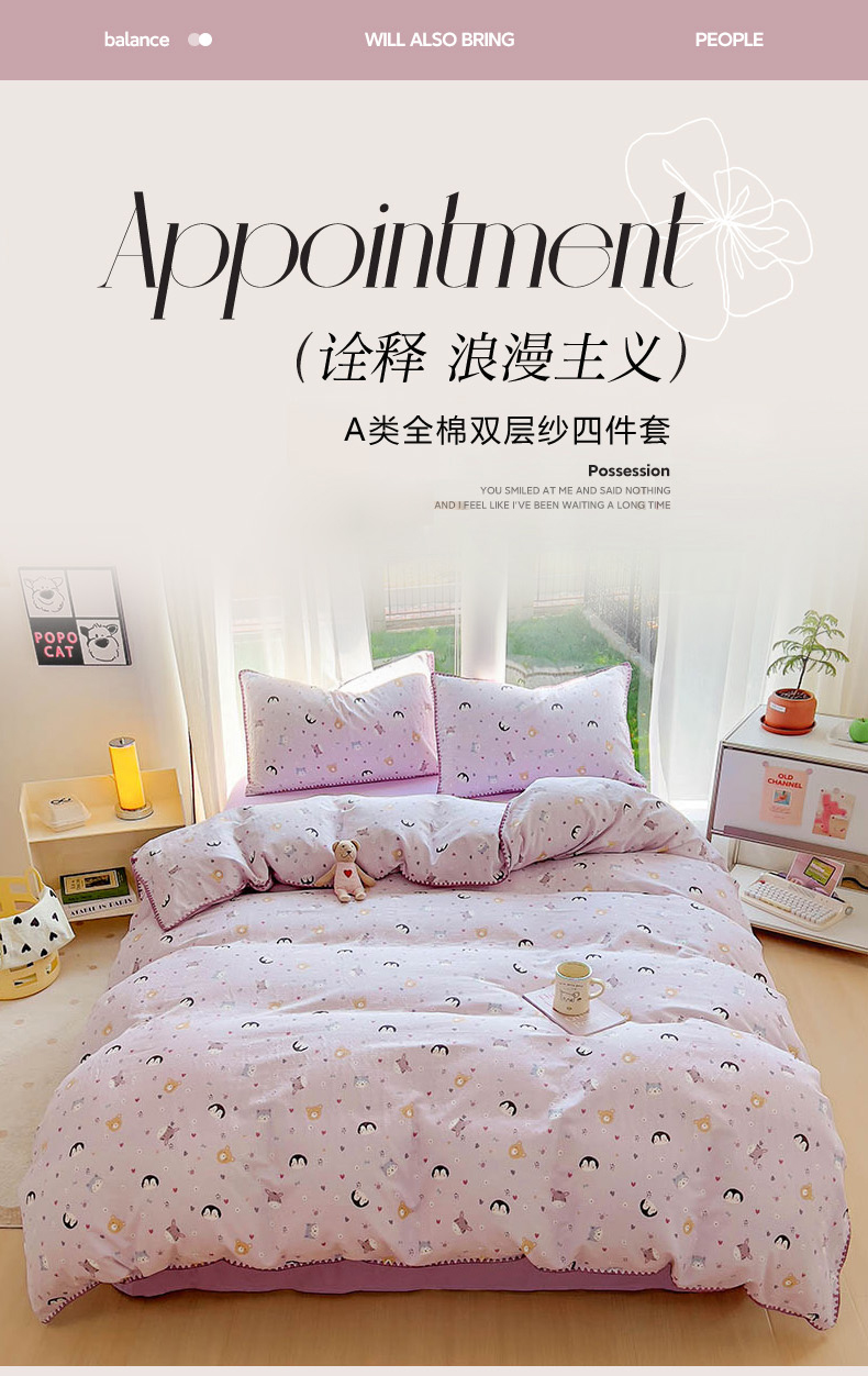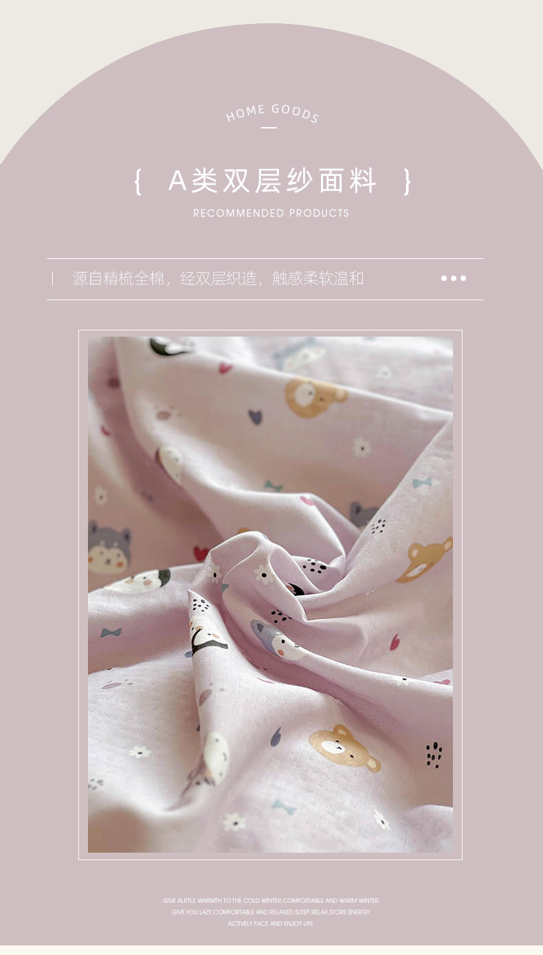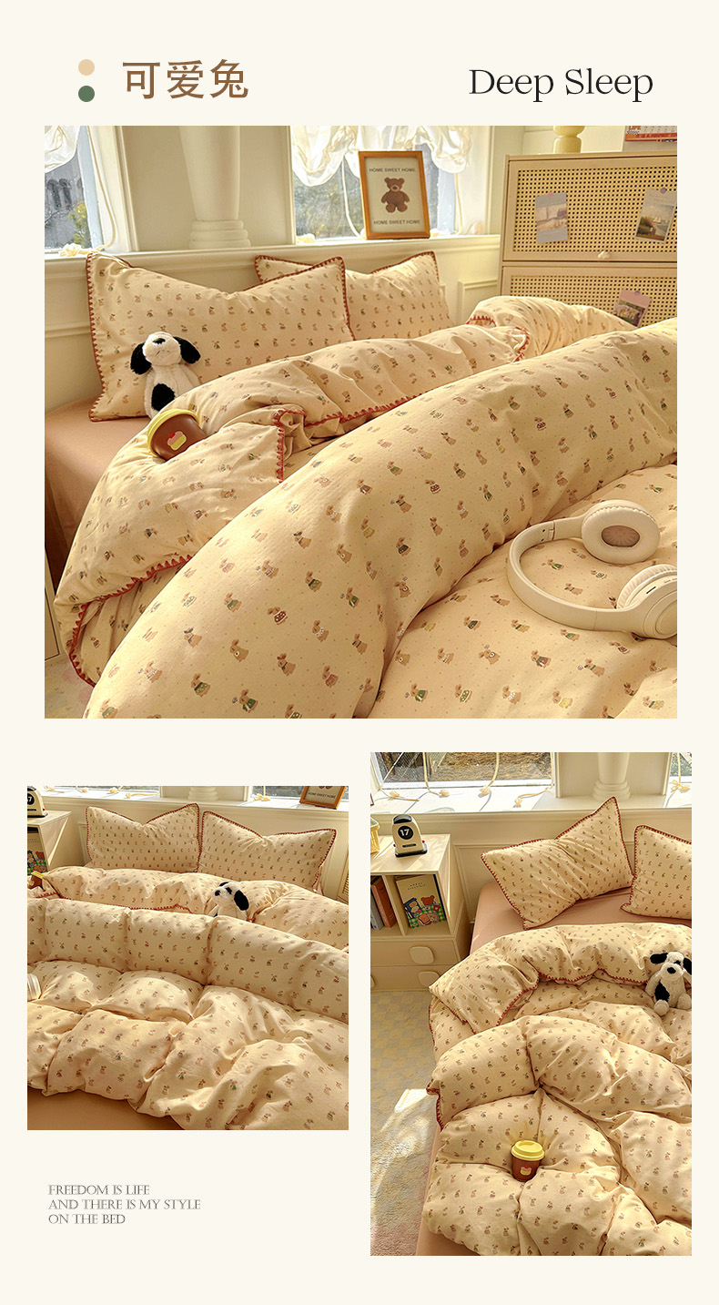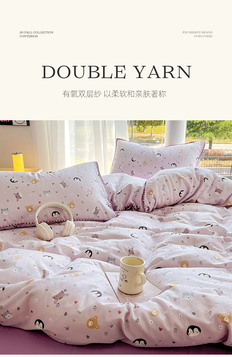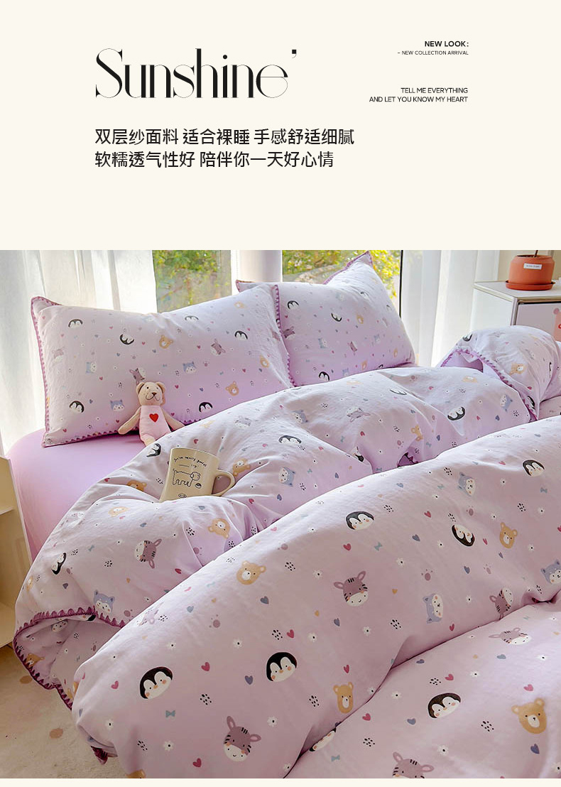 当前位置: 91家纺网 > 商品网购 > 床品套件 > 四件套 > 双层纱四件套 > (提供买家秀 爆款花型 不断货)2025新款A类全棉双层纱四件套 可爱软萌