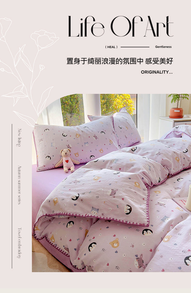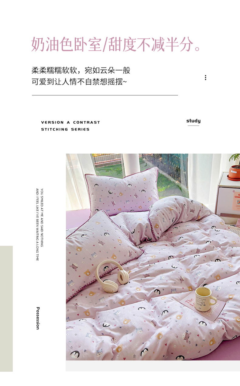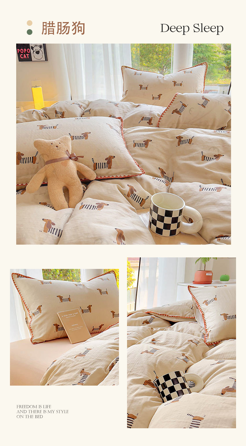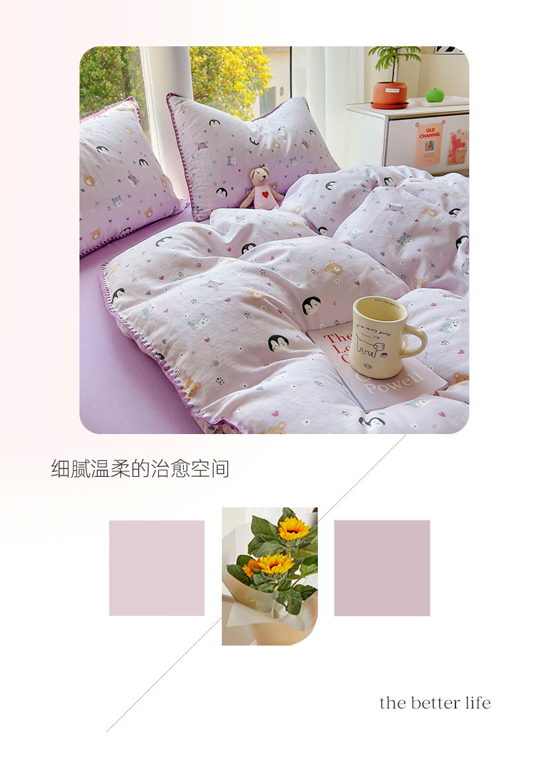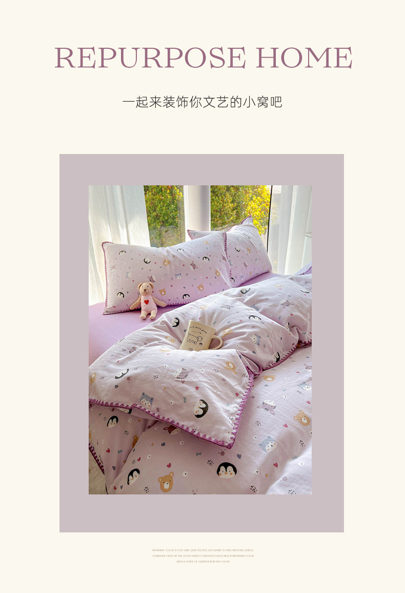 当前位置: 91家纺网 > 商品网购 > 床品套件 > 四件套 > 双层纱四件套 > (提供买家秀 爆款花型 不断货)2025新款A类全棉双层纱四件套 可爱软萌