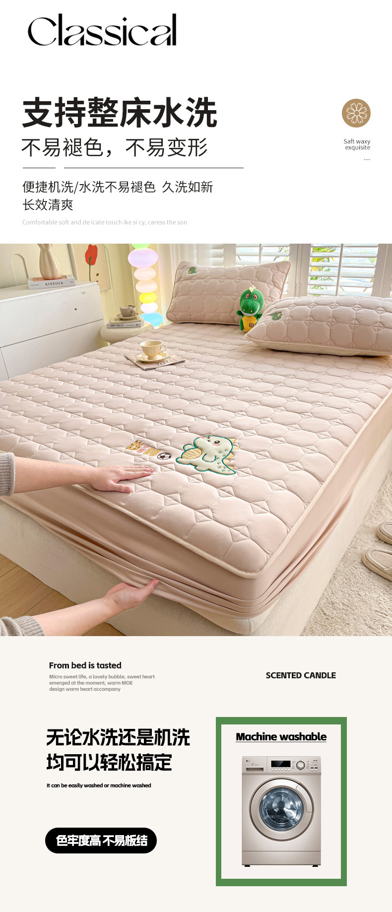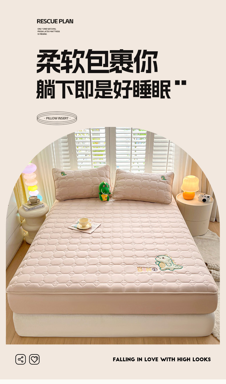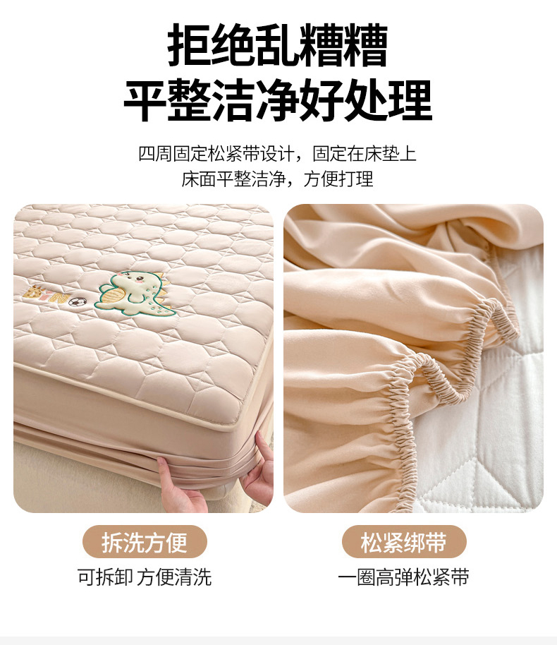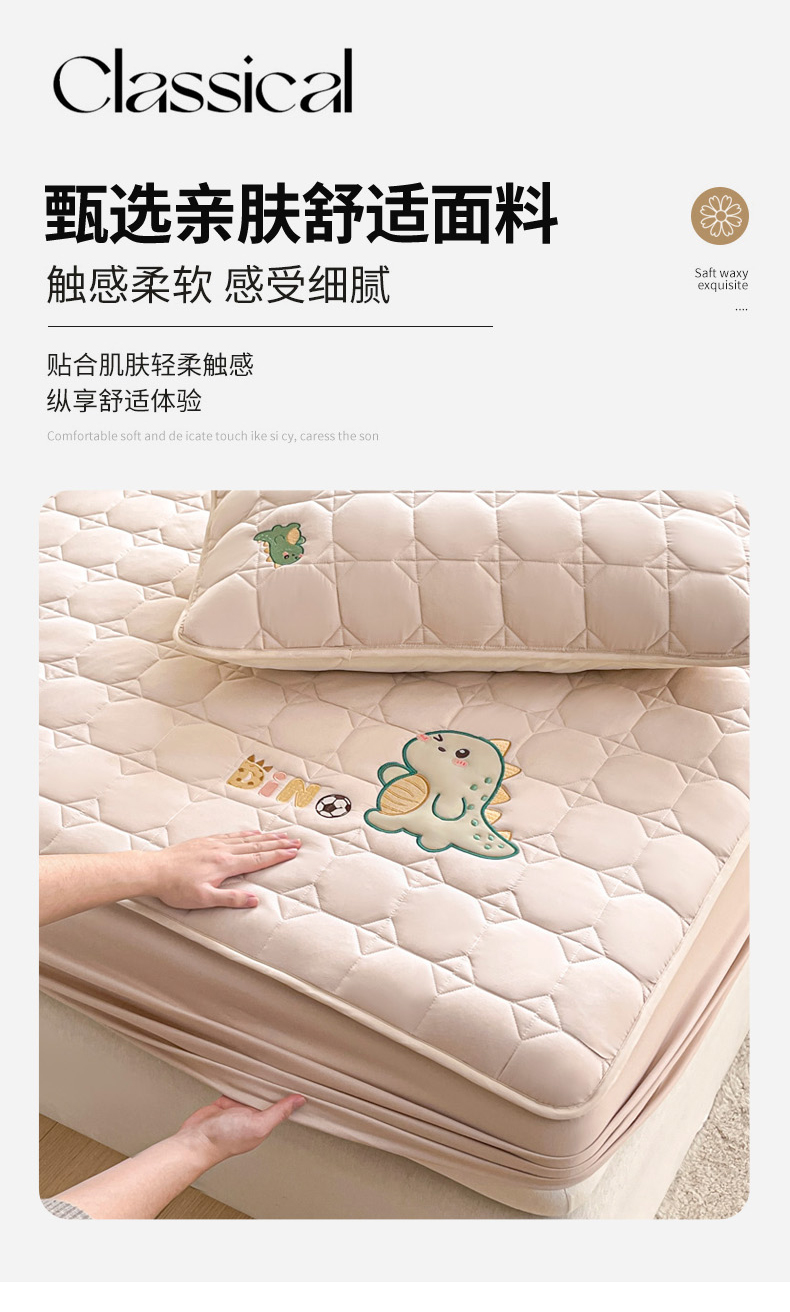商品名称:万盛家纺 2025新款夹棉恐龙刺绣床笠 恐龙-方格 卡其