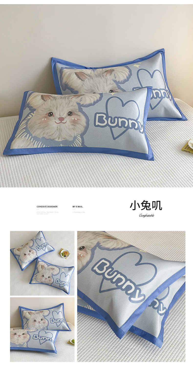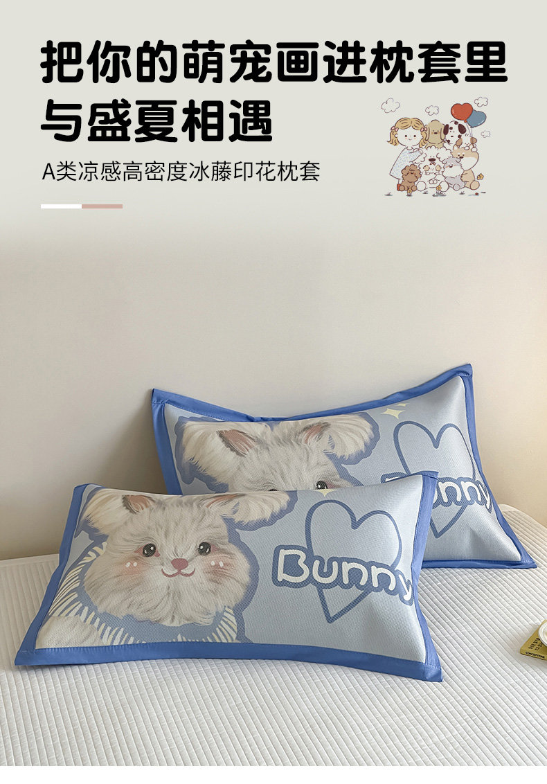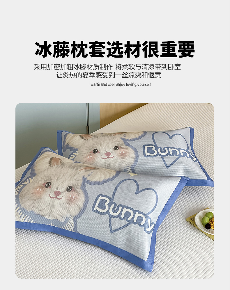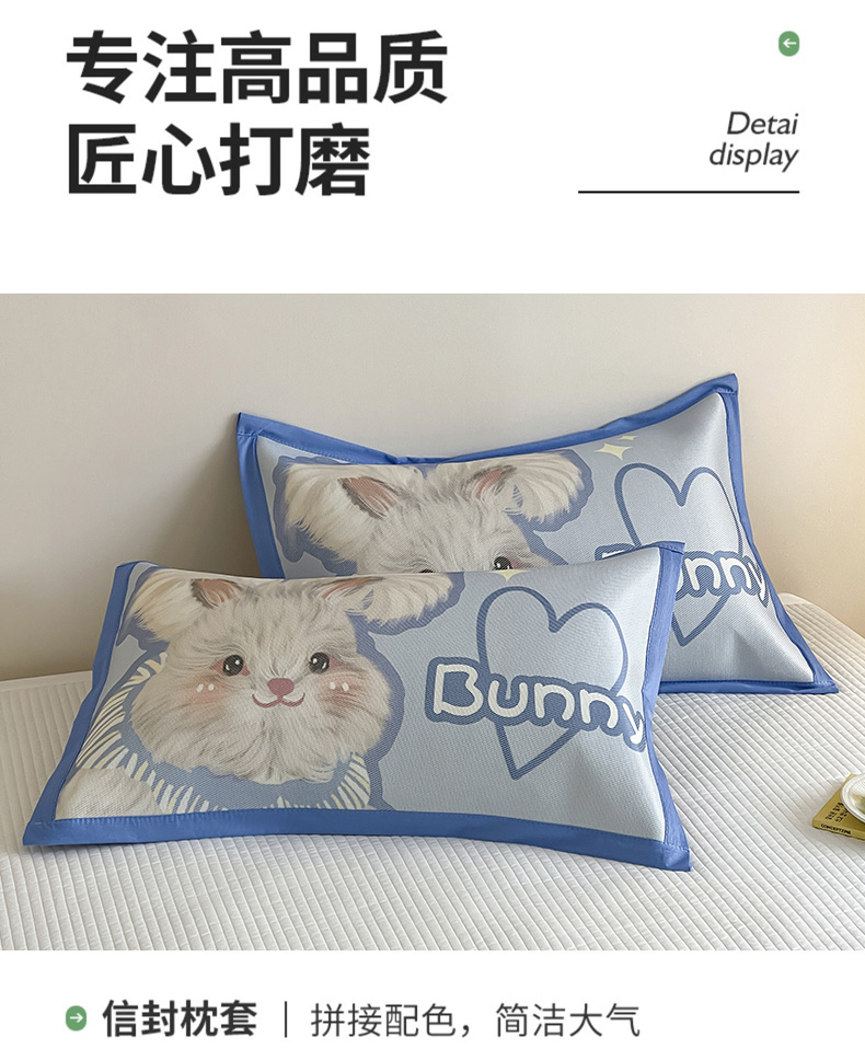 商品名称:安哆啦家纺 2025新款A类大版印花冰藤儿童幼儿园卡通萌宠系列凉席单枕套 小兔叽