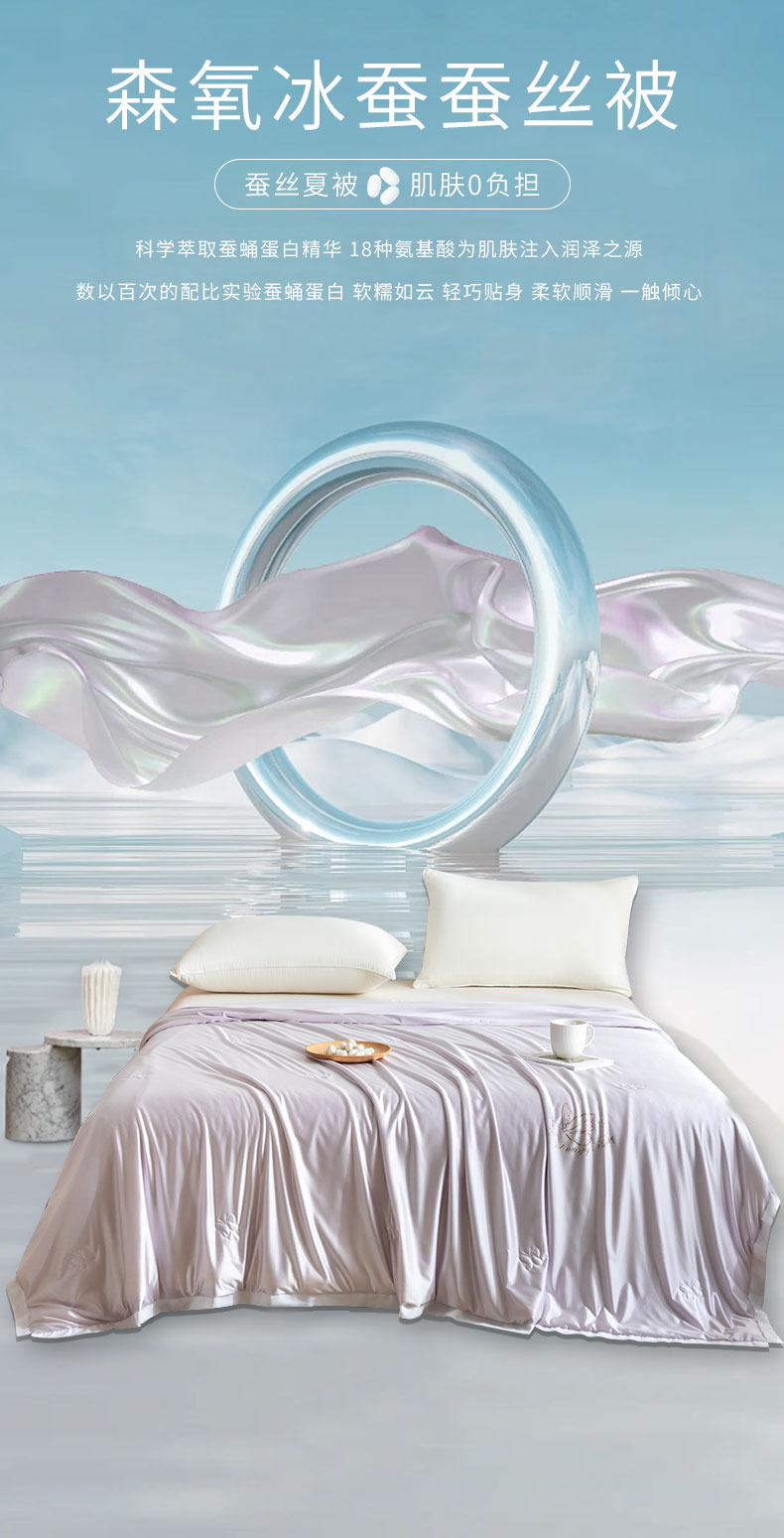 (总)野马寝具跨境电商专供 2025新款森氧冰蚕蚕丝被,粉色,金色,紫色