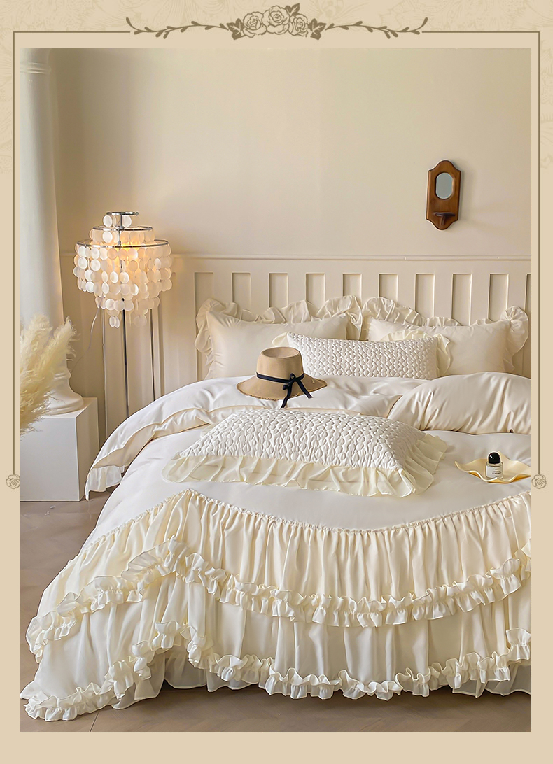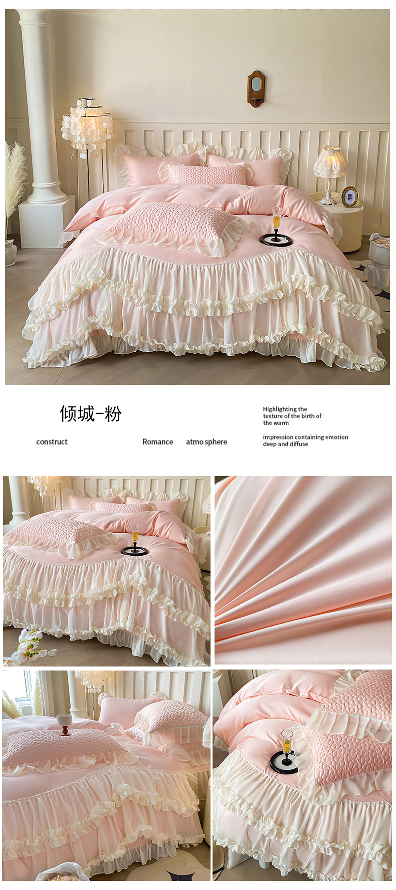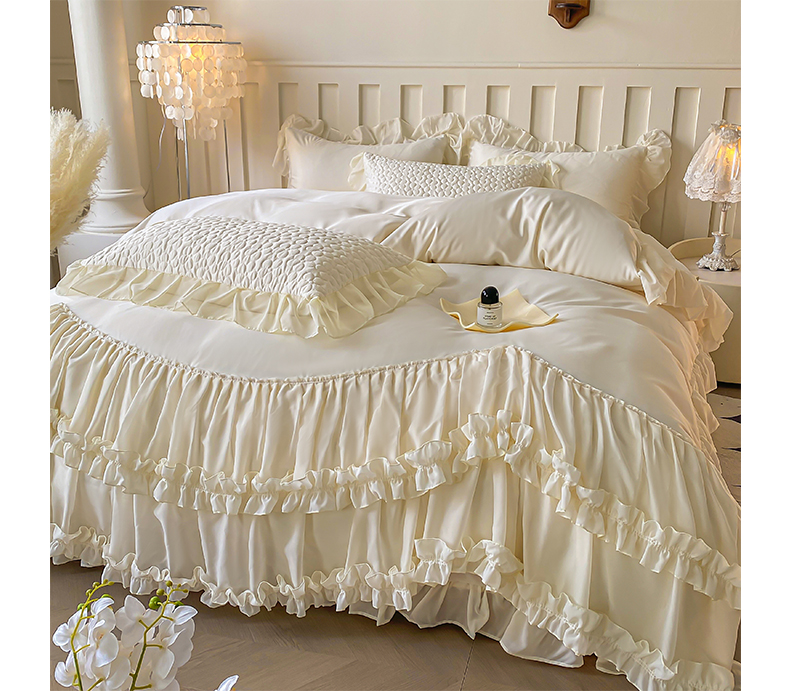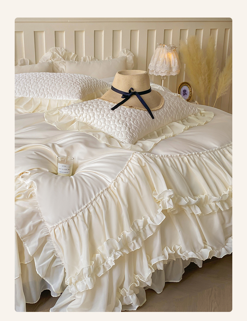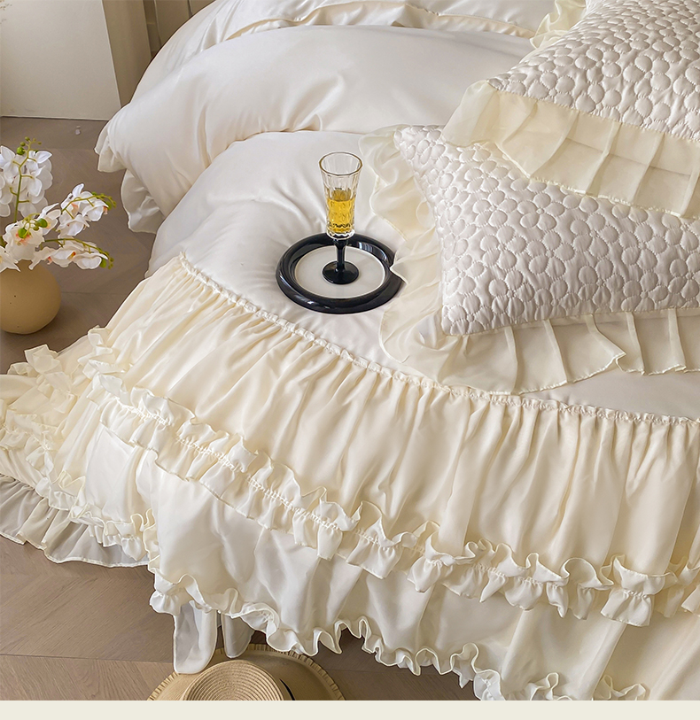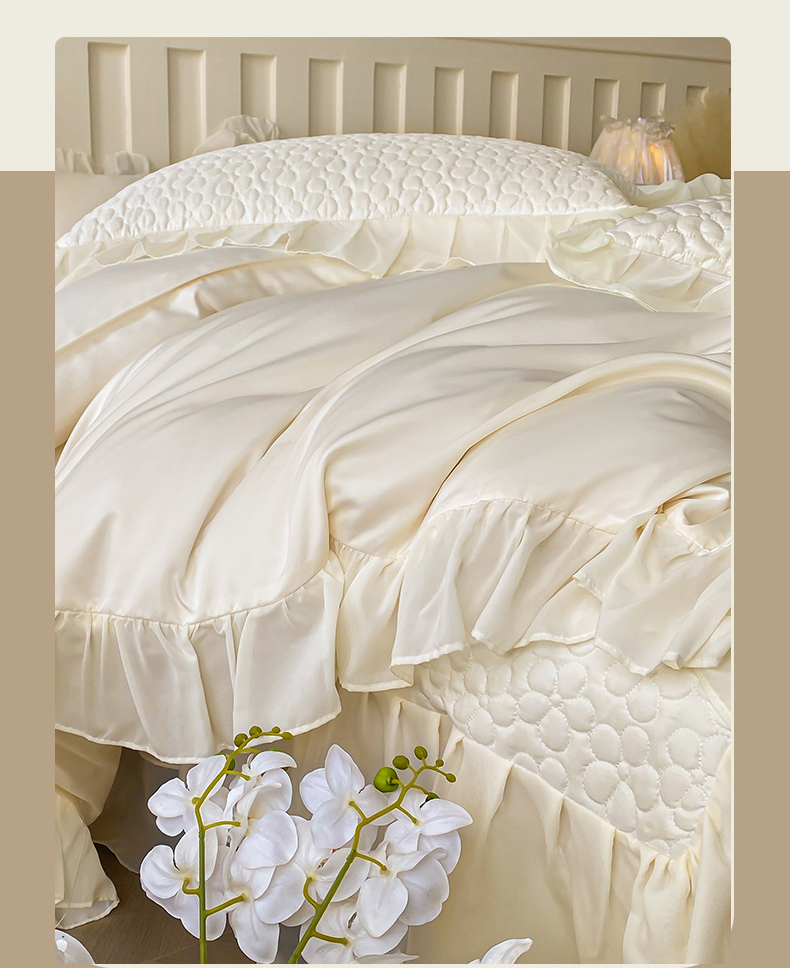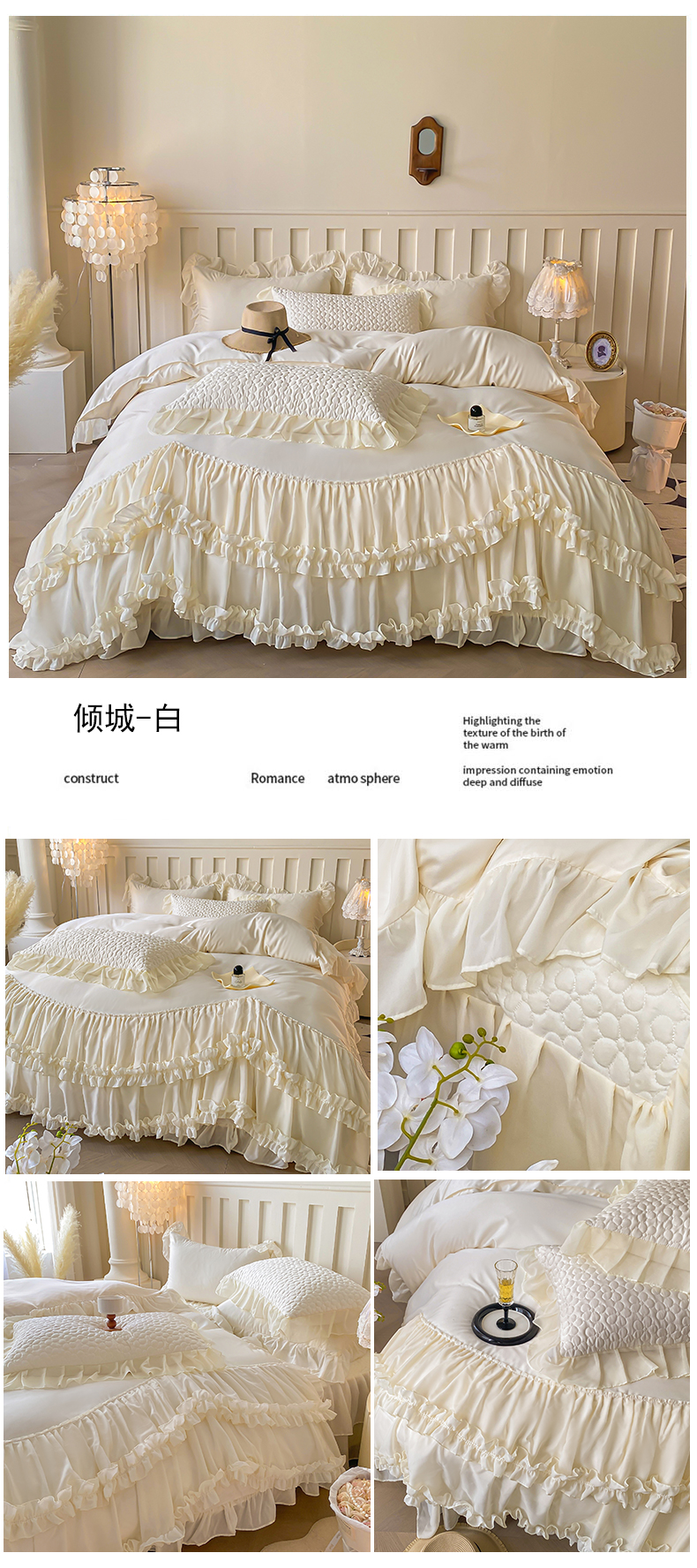 当前位置: 91家纺网 > 商品网购 > 床品套件 > 四件套 > 其它四件套 > 花香四季家纺 2025新款天丝棉床裙款四件套-倾城 倾城-白