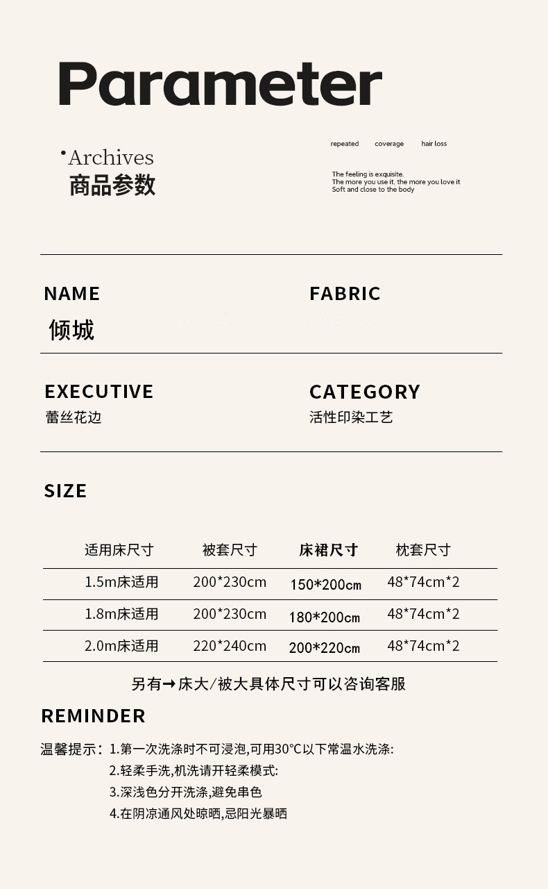 1.8m床裙款四件套(200x230cm被套) | ¥135.00 |