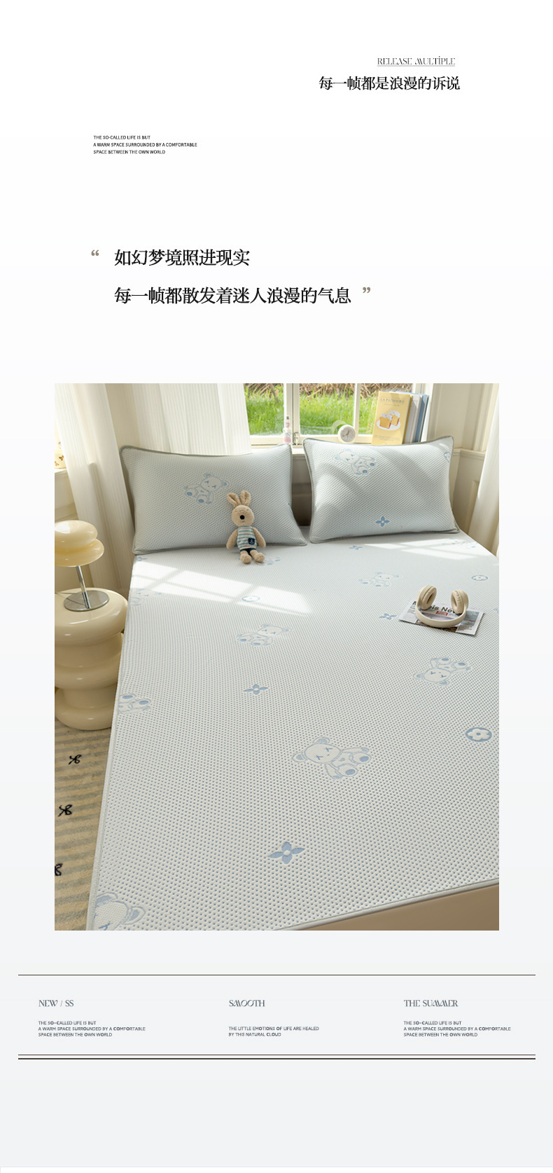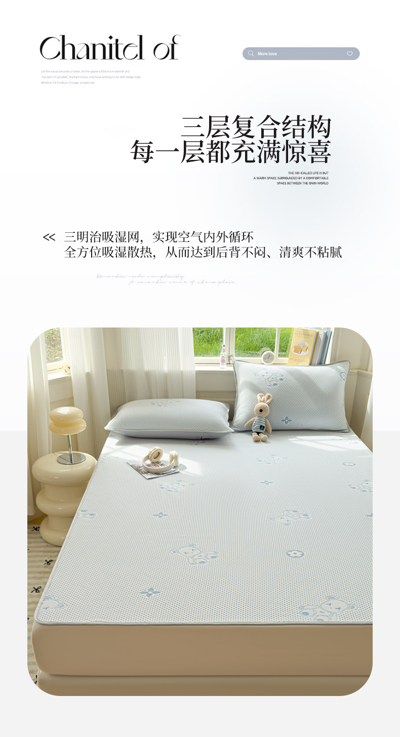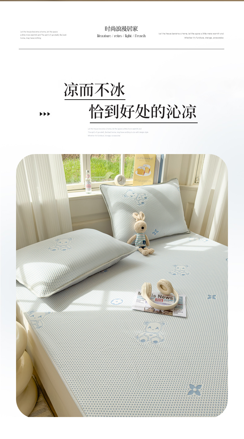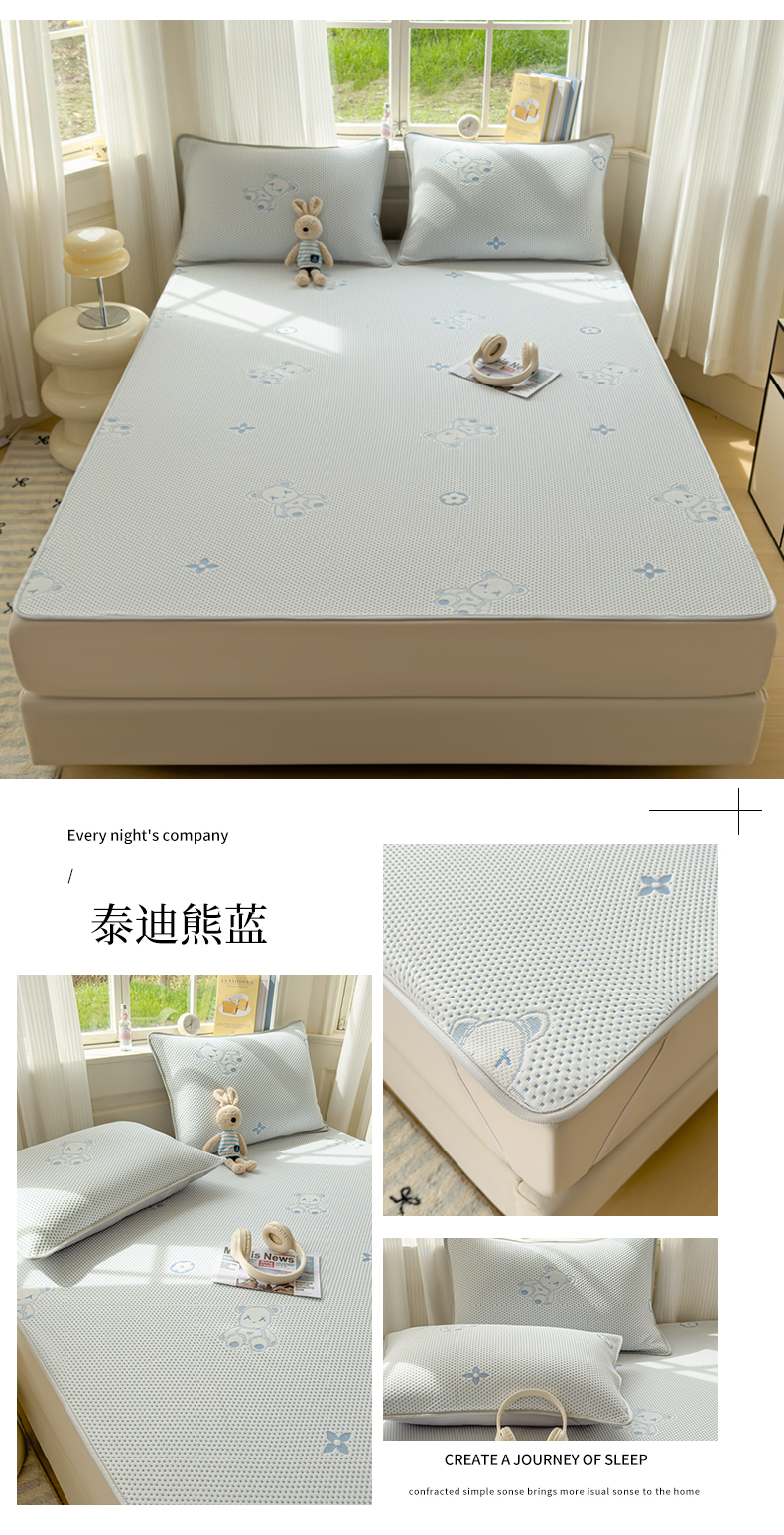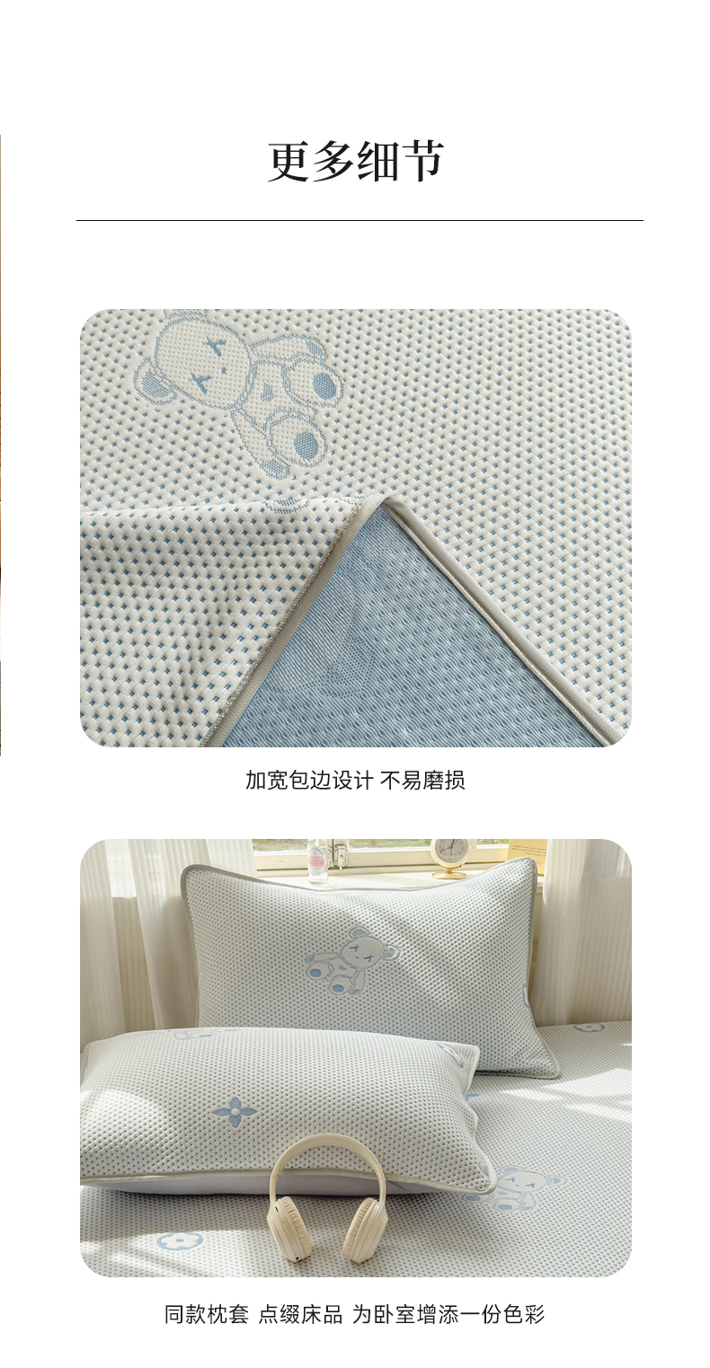 商品名称:吉祥2025新款提花凉豆豆凉席席子凉豆豆凉席系列 泰迪熊蓝