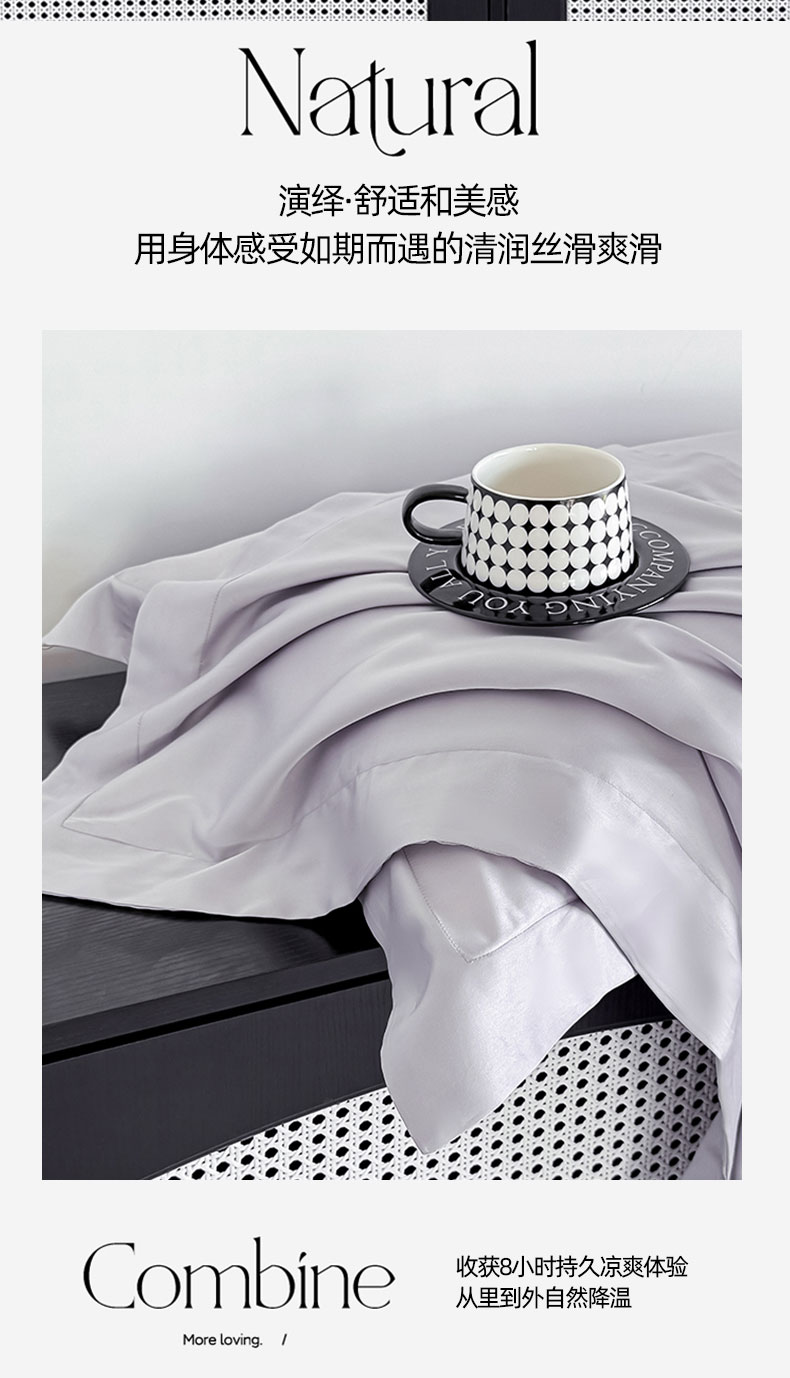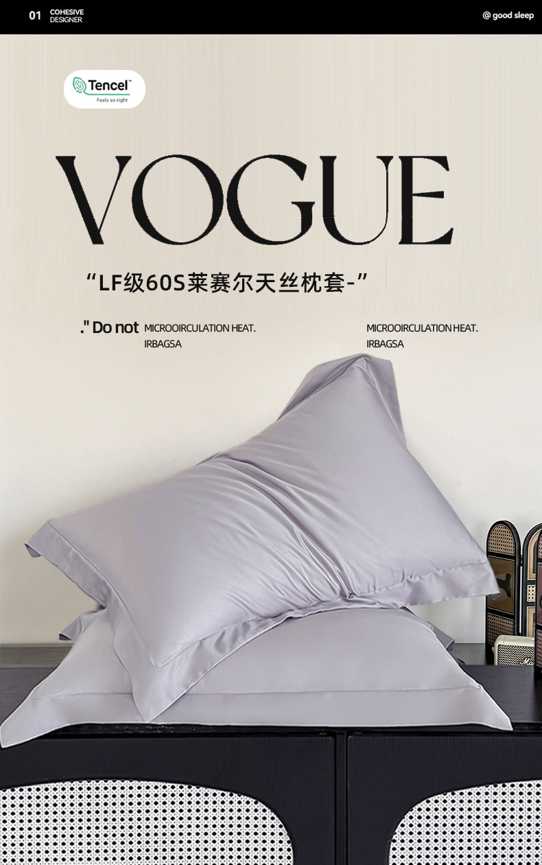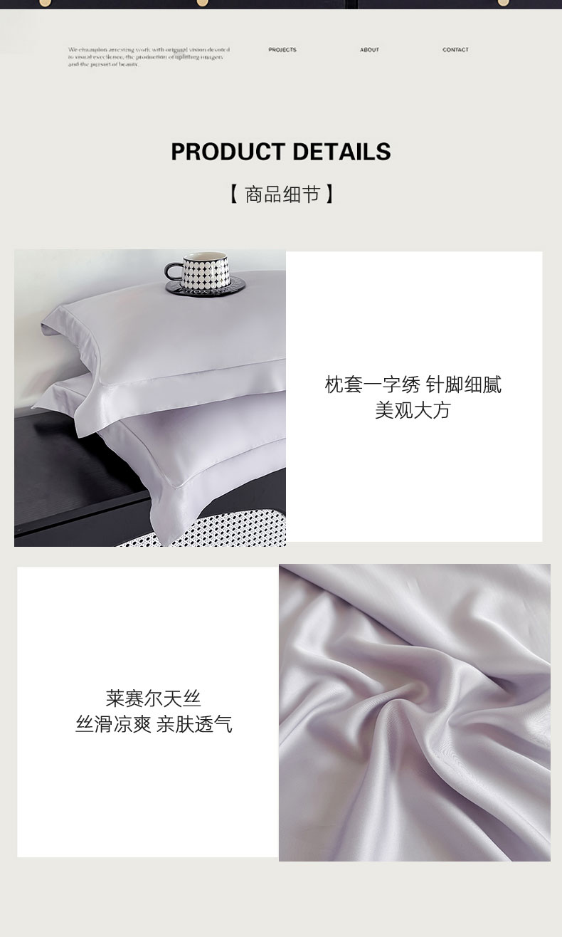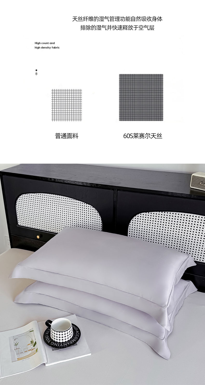 商品名称:金喜 2025新款LF级60支莱赛尔天丝枕套宽边枕套 灰紫