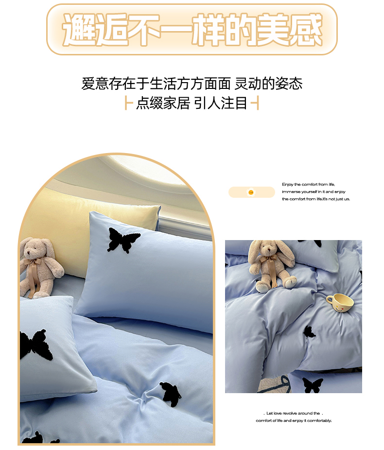 当前位置: 91家纺网 > 商品网购 > 床品套件 > 四件套 > 水洗棉四件套 > 易展家居 2025新款加厚水洗棉四件套-蝴蝶 蝴蝶-蓝