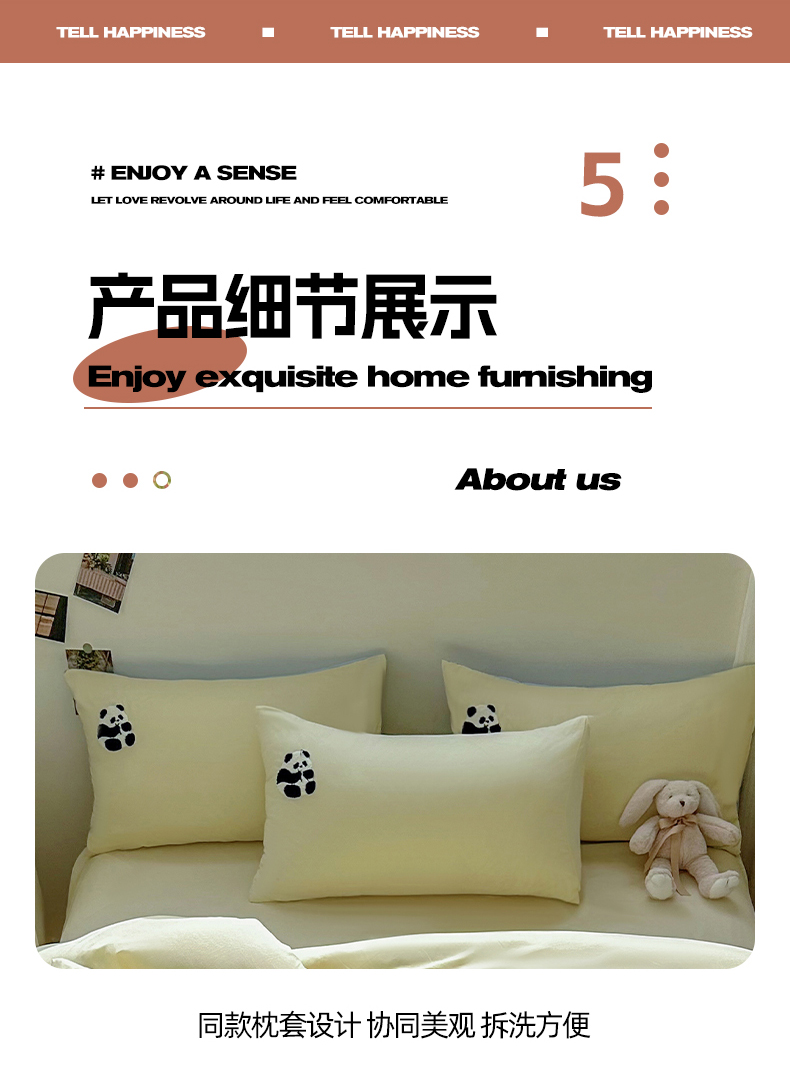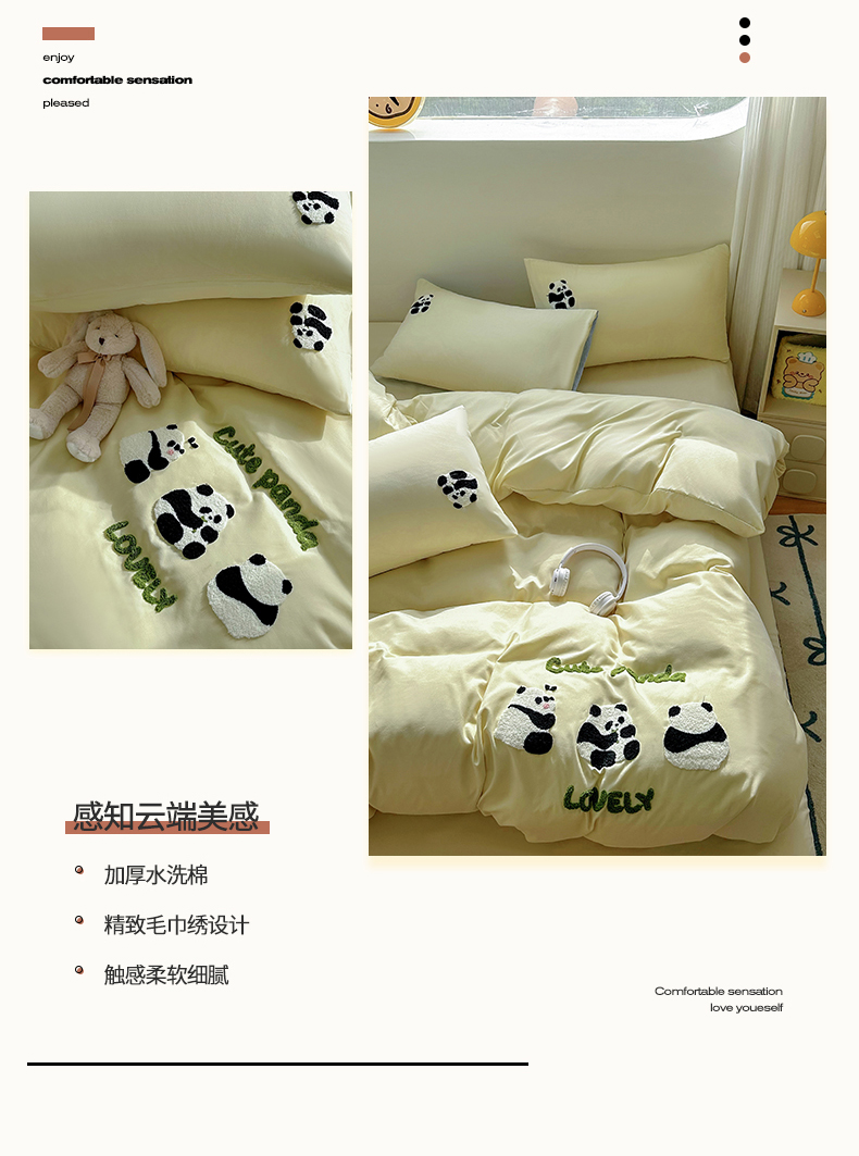 当前位置: 91家纺网 > 商品网购 > 床品套件 > 四件套 > 水洗棉四件套 > 易展家居 2025新款加厚水洗棉四件套-熊猫 春黄