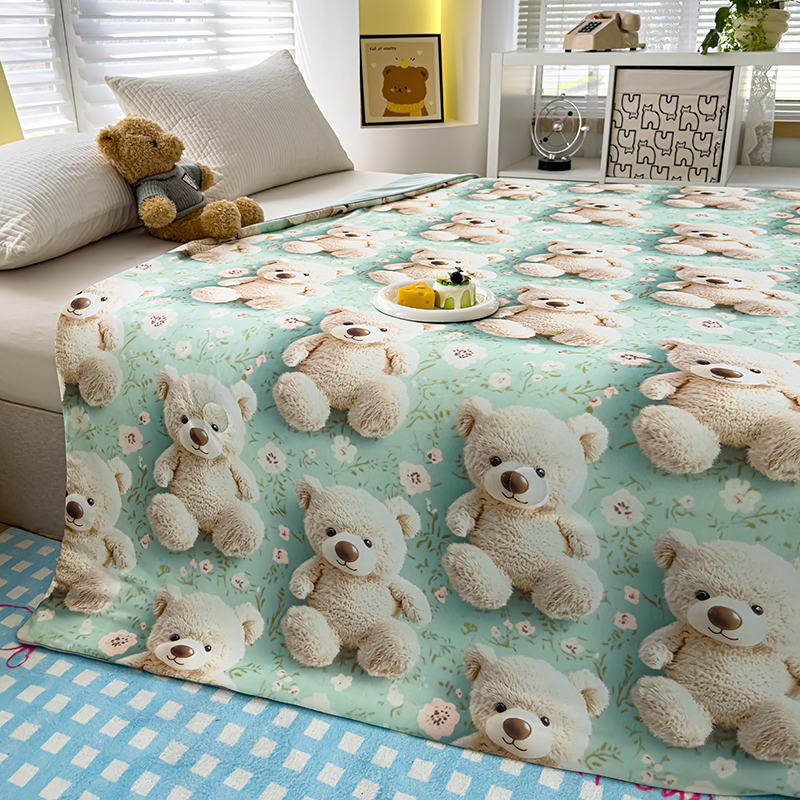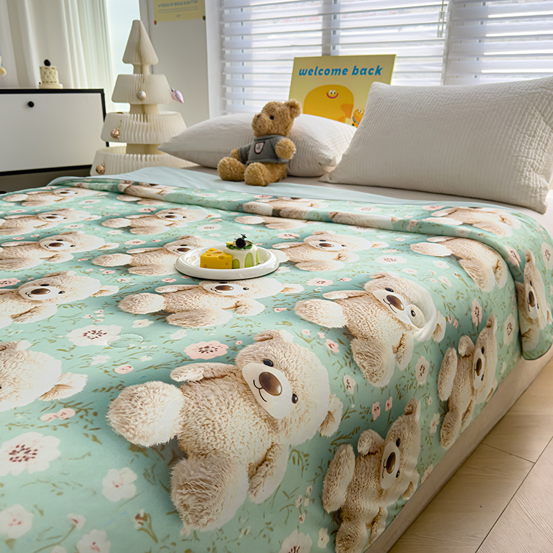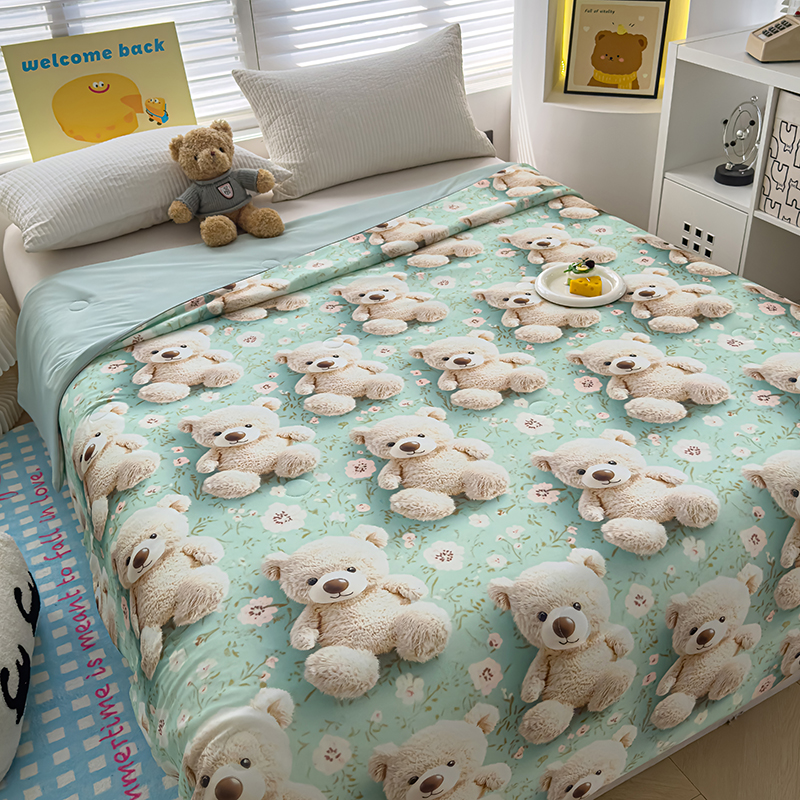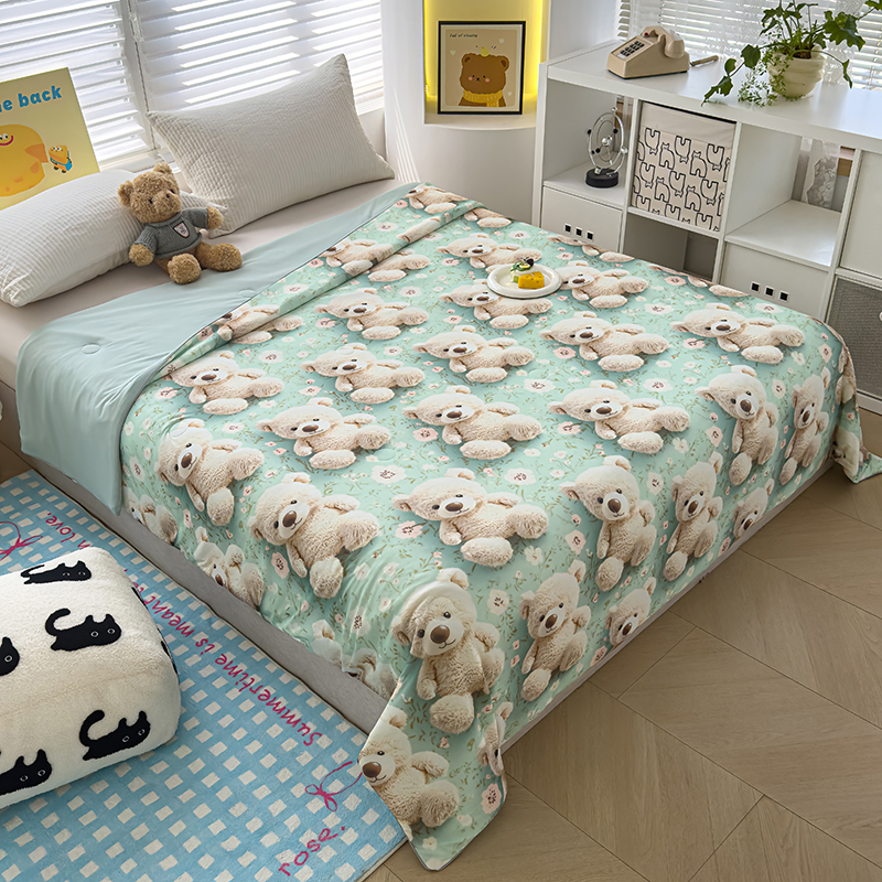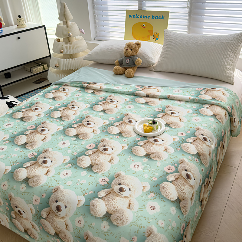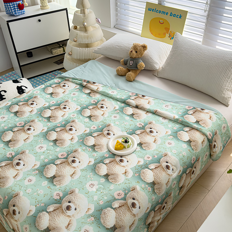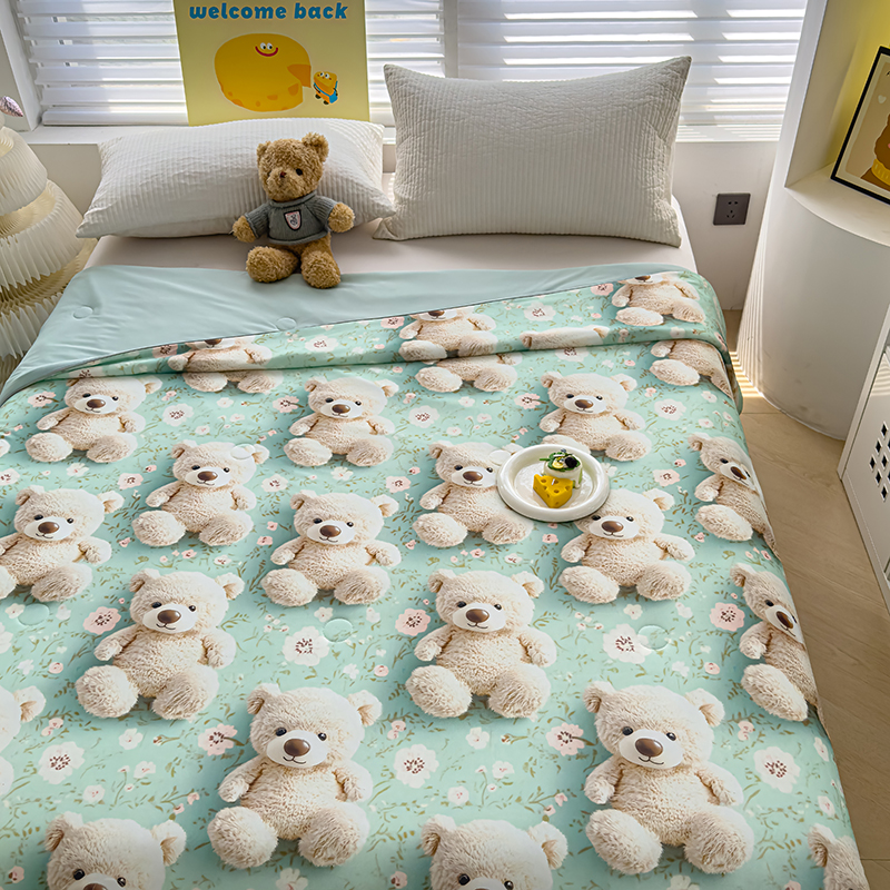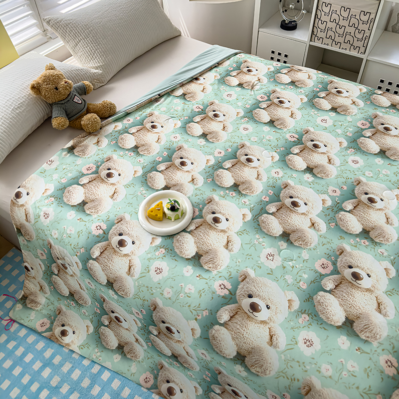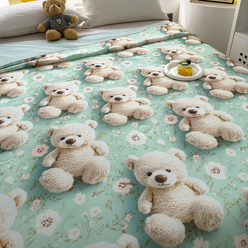 商品名称:归属 2025新款亲肤舒适5D大版数码印花冰淇淋夏被夏凉被空调被-系列二 毛绒熊