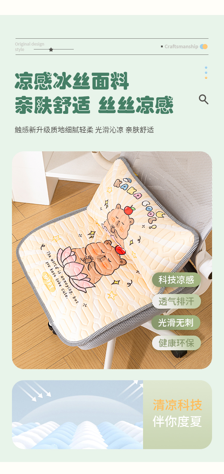 (总)芙宁娜 2025新款冰丝坐垫椅垫屁垫学生椅子垫夏季办公室凳子久坐凉席冰垫,凹凸曼,卡皮巴拉,恐龙,腊肠犬,奶茶兔,土拨鼠,幸运兔,宇航员