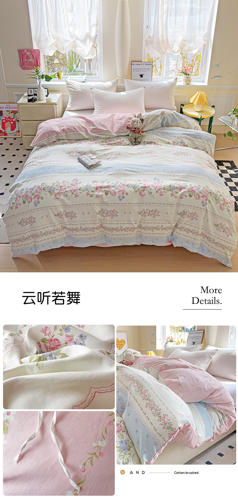 • 91家纺网 家纺一手货源 找家纺 依庭 2025新款全棉印花花卉款四件套单品系列-单被套 云听若舞