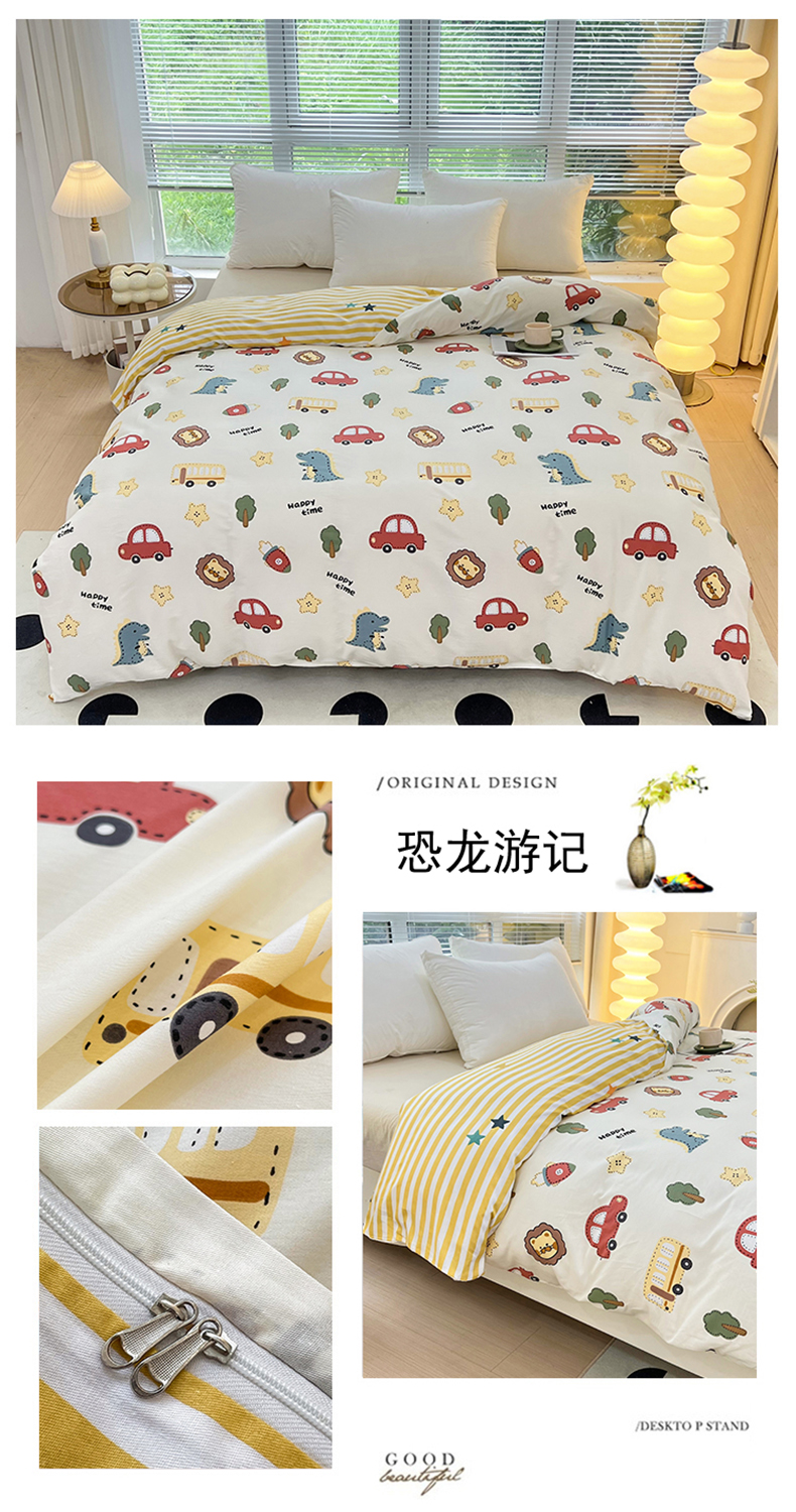 • 91家纺网 家纺一手货源 找家纺 依庭 2025新款全棉印花花卉款四件套单品系列-单被套 恐龙游记