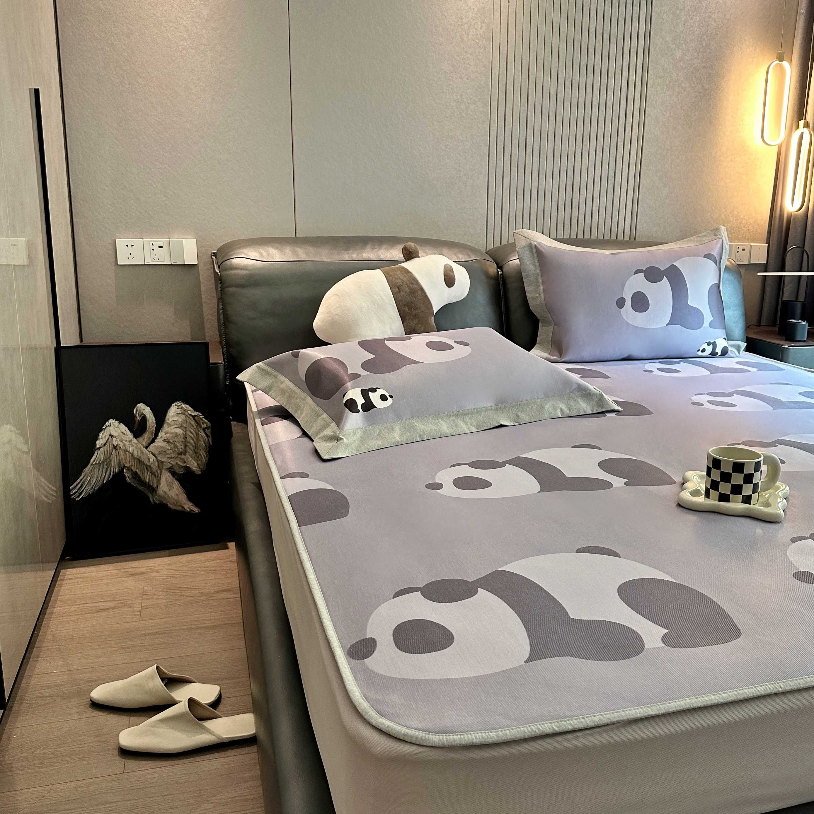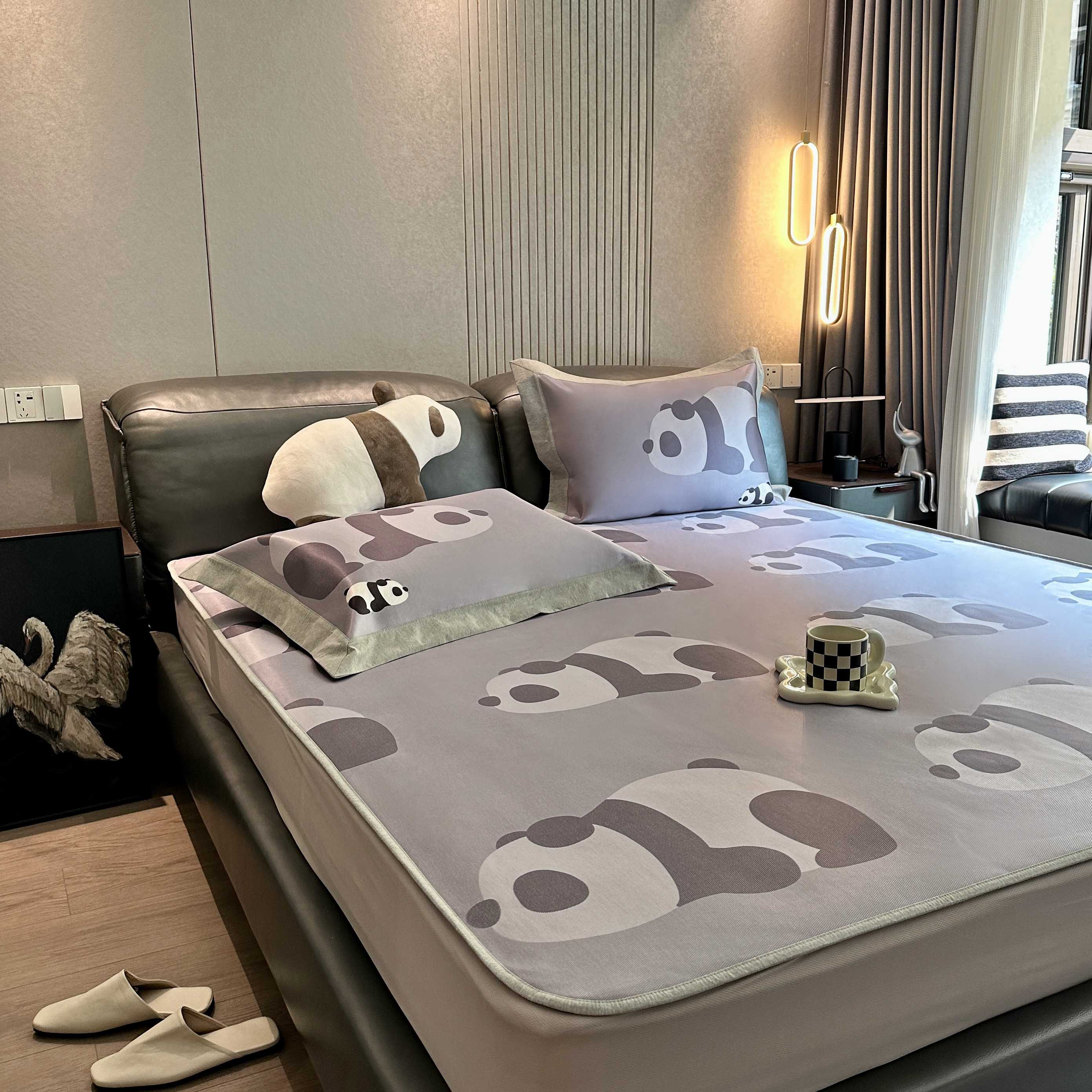 商品名称:JUICY 橘滋家纺 2025新款夏日高端轻奢数码冰丝奢简高级凉席床笠 趴趴熊猫