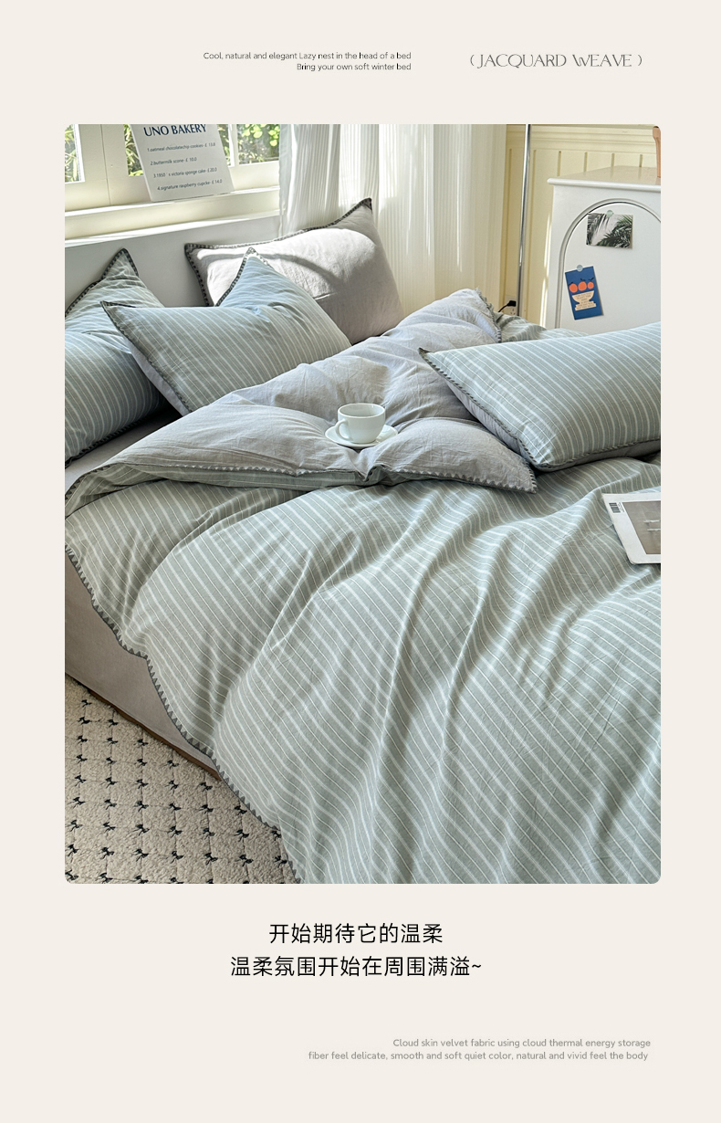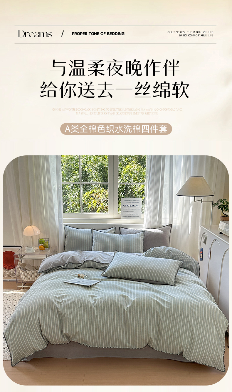 当前位置: 91家纺网 > 商品网购 > 床品套件 > 四件套 > 全棉普通四件套 > 晚依家纺 2025新款A类全棉色织水洗棉被套单件格子条纹四件套学生宿舍被罩三件套定制定做 乐事-绿灰