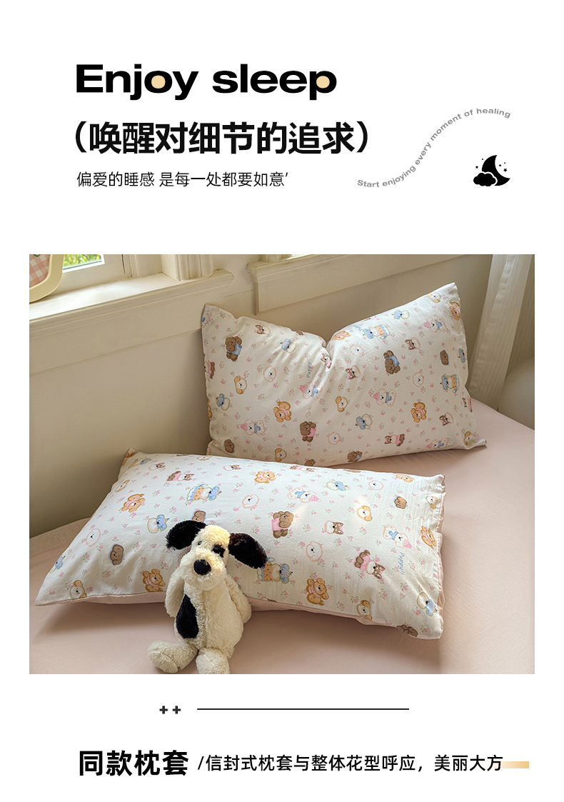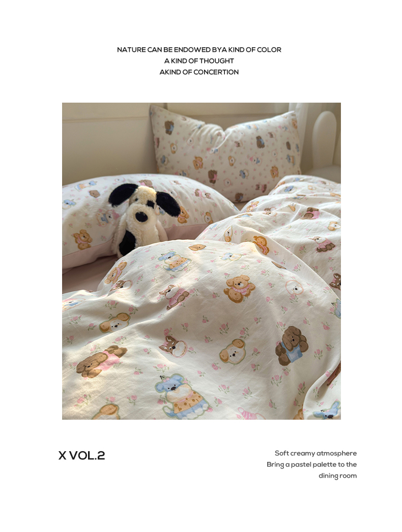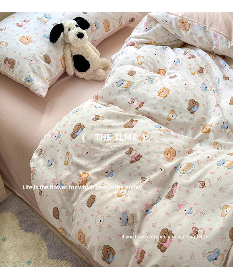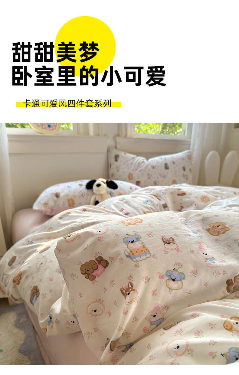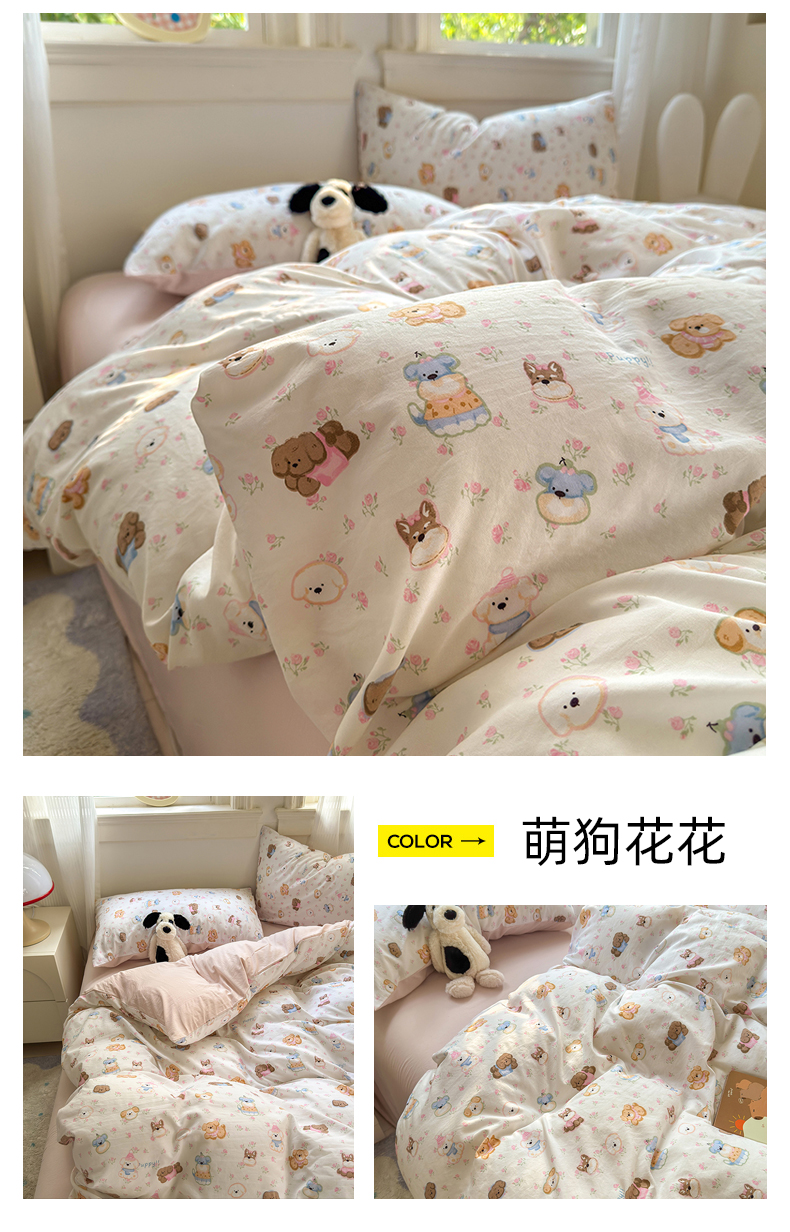 当前位置: 91家纺网 > 商品网购 > 床品套件 > 四件套 > 沐芷 2025 A类软萌水洗棉卡通印花四件套床上用品三件套被套床单 萌狗花花