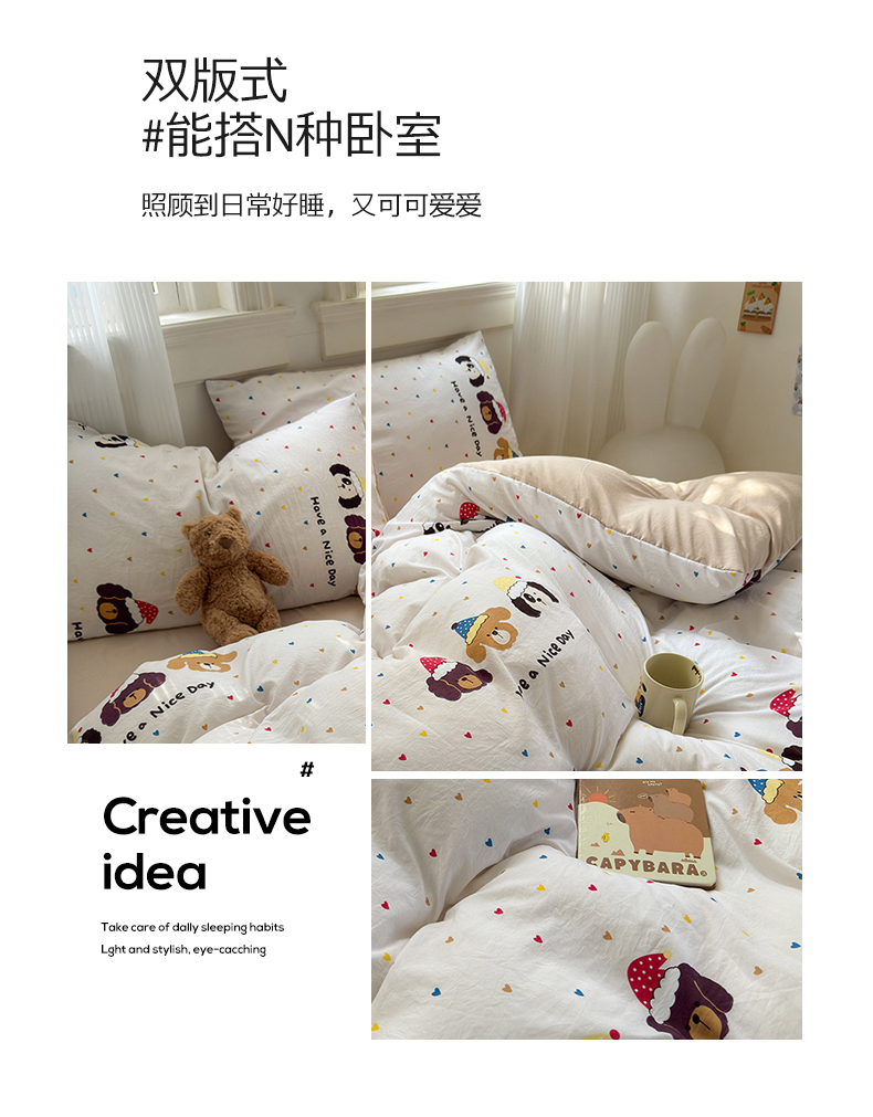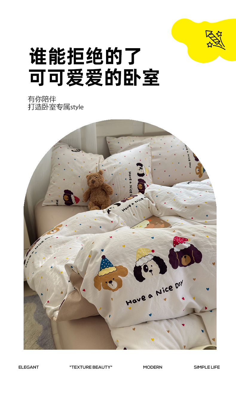 当前位置: 91家纺网 > 商品网购 > 床品套件 > 四件套 > 沐芷 2025 A类软萌水洗棉卡通印花四件套床上用品三件套被套床单 晚安宝贝