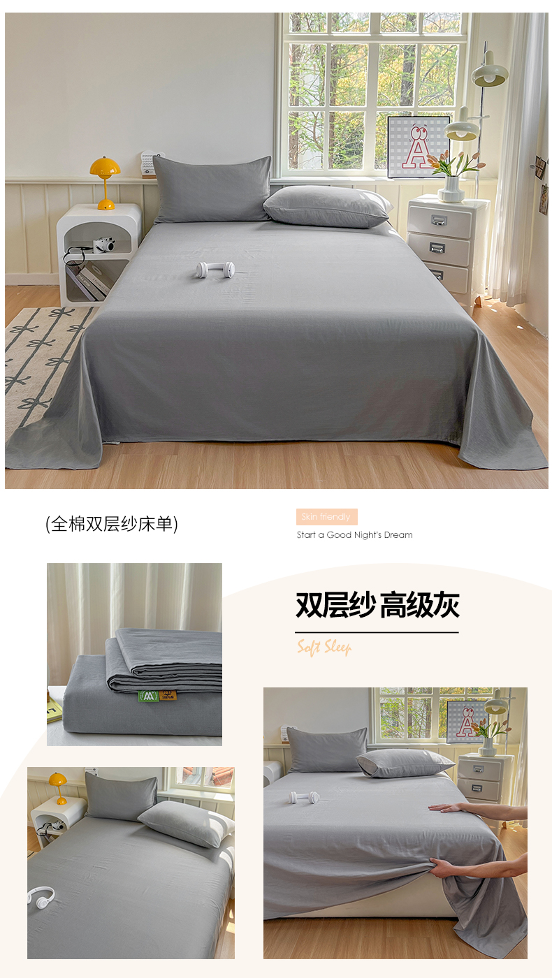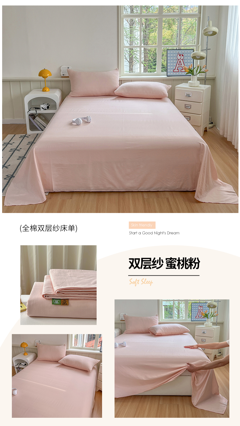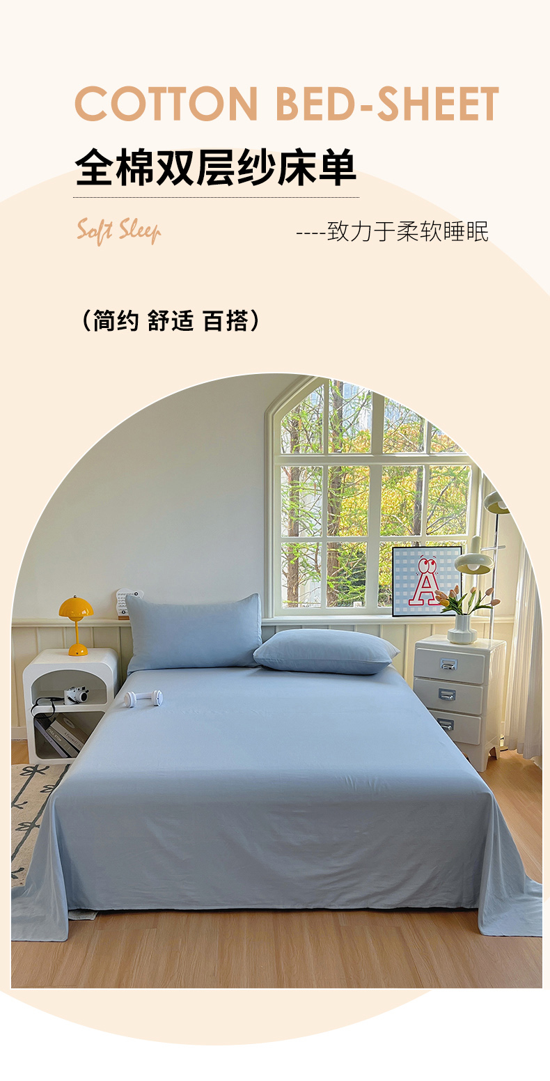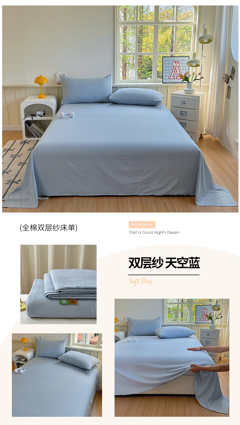 柠萌家居 2025年新款A类母婴级纯棉双层纱床单全棉床单 双层纱天空蓝