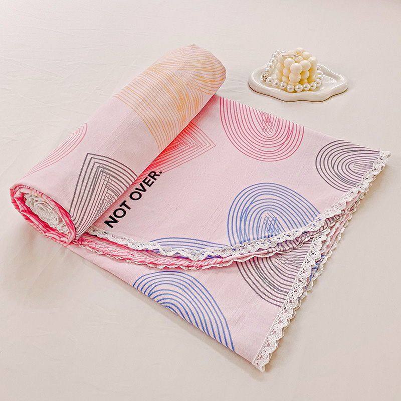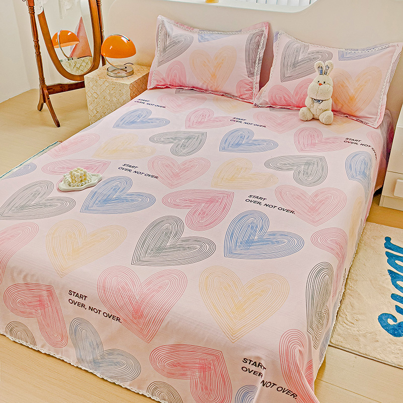 商品名称:宜家坊 2025新款春夏原棉鱼骨棉老粗布花边印花床单软凉席三件套 心动-粉
