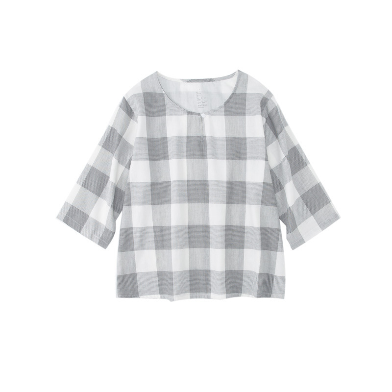 商品名称:良品汇馆 2025新款日系无印双层纱家居服良品女士七分袖家居服套装全棉格纹套头睡衣 千鸟格-兰