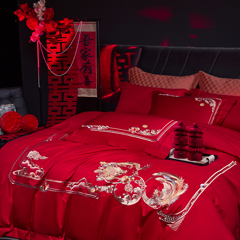 (总)洽想家 2025新款120支双面新疆长绒棉刺绣工艺款婚庆四件套多件套,花好月圆,龙凤美满,年年有鱼,团圆龙凤,喜迎百子,新婚贺喜