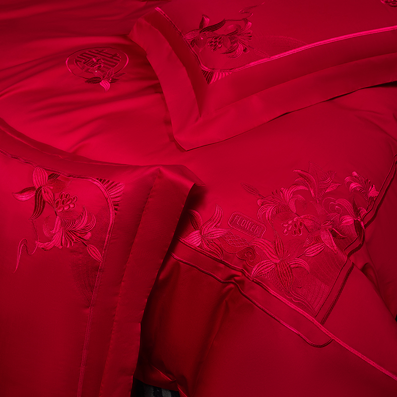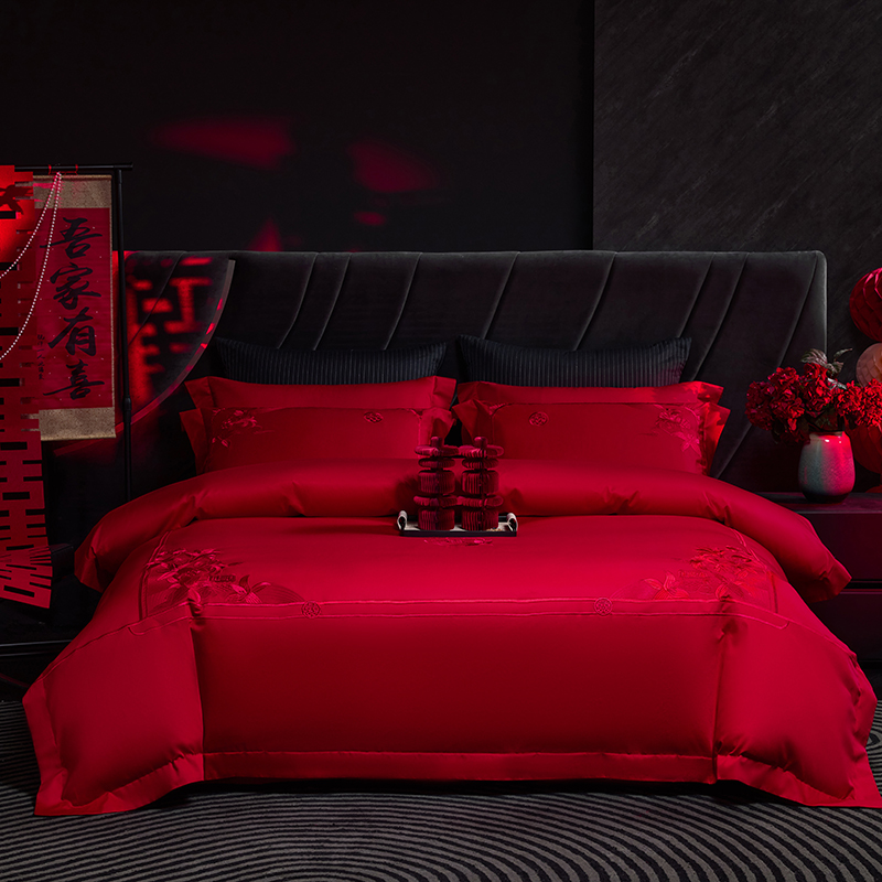 商品名称:洽想家 2025新款纯棉贡缎刺绣婚庆系列四件套 婚庆-百子图