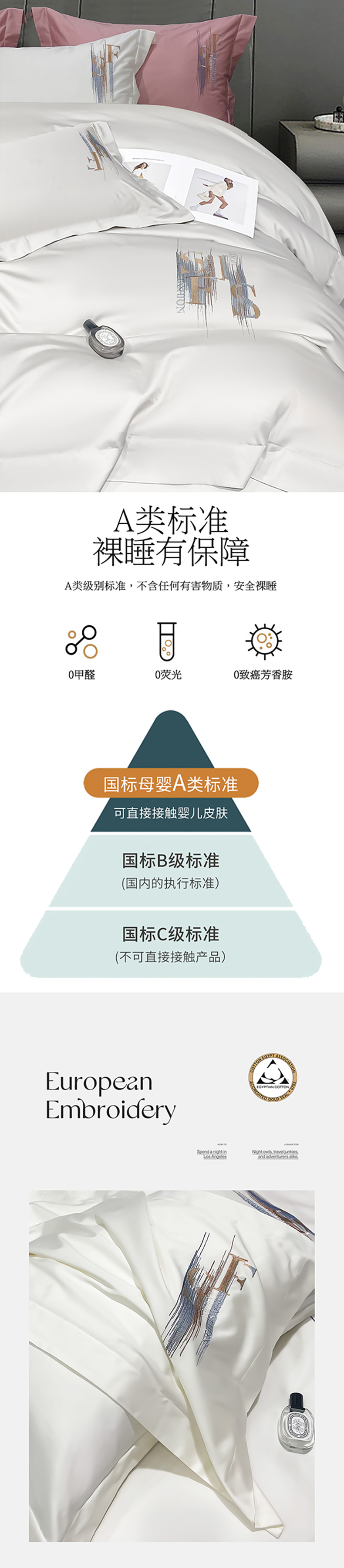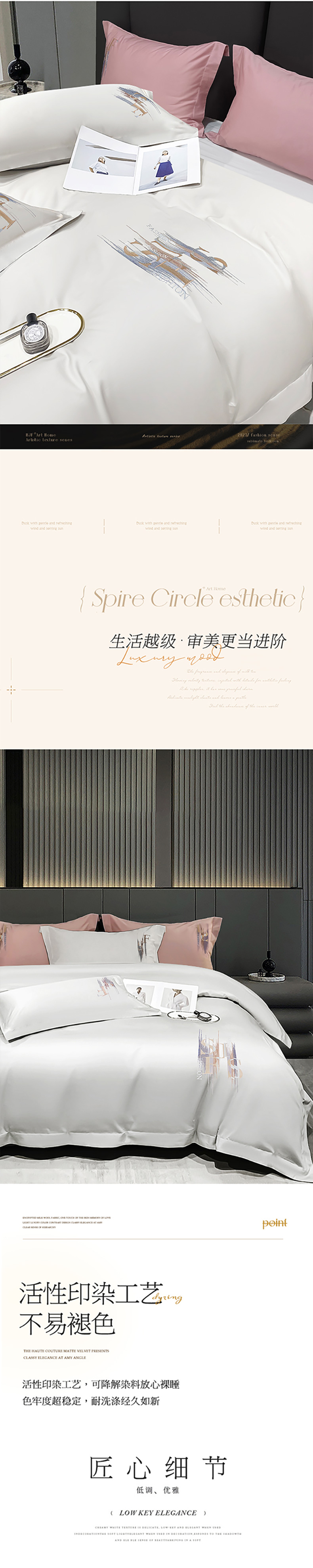 洽想家 2025新款100支长绒棉刺绣四件套--时光痕迹 时光痕迹-皓月白