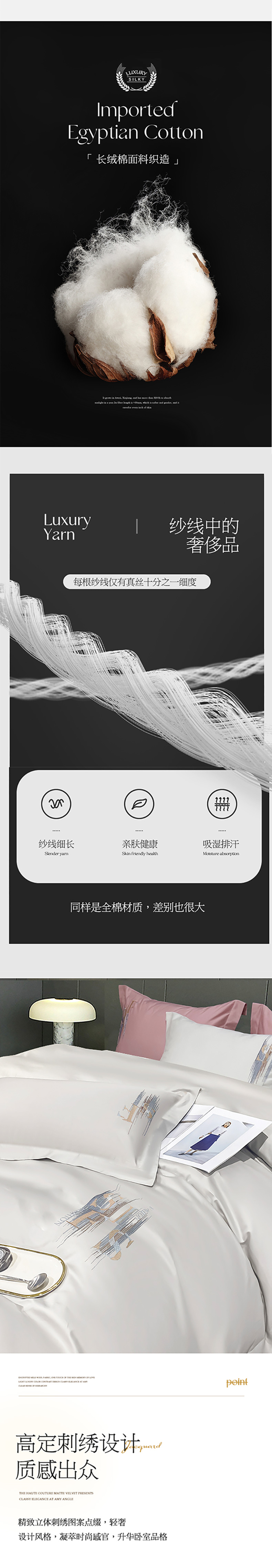 商品名称:洽想家 2025新款100支长绒棉刺绣四件套--时光痕迹 时光痕迹-皓月白