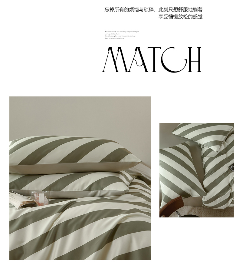 商品名称:ONE TWO ONE 121 2025新款高支高密长绒棉纯棉贡缎宽缎条纹四件套-Say 晚安(标准不低于268元, 加大不低于 288元) 假日趣味