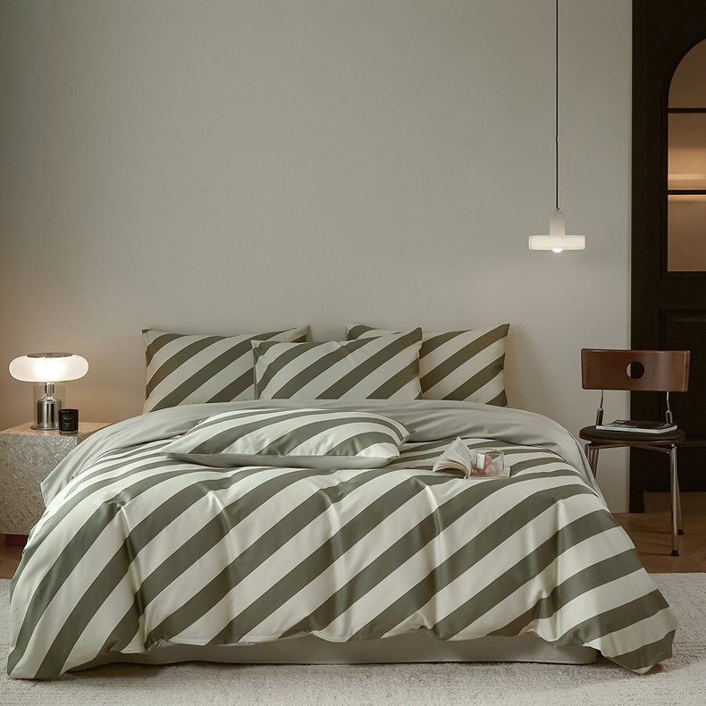 ONE TWO ONE 121 2025新款高支高密长绒棉纯棉贡缎宽缎条纹四件套-Say 晚安(标准不低于268元, 加大不低于 288元) 假日趣味