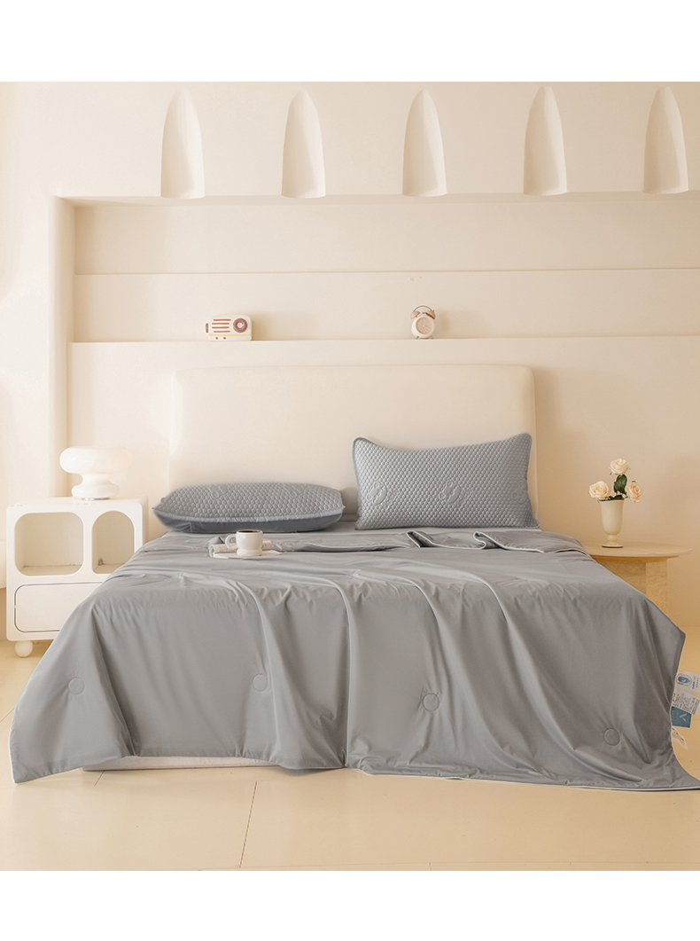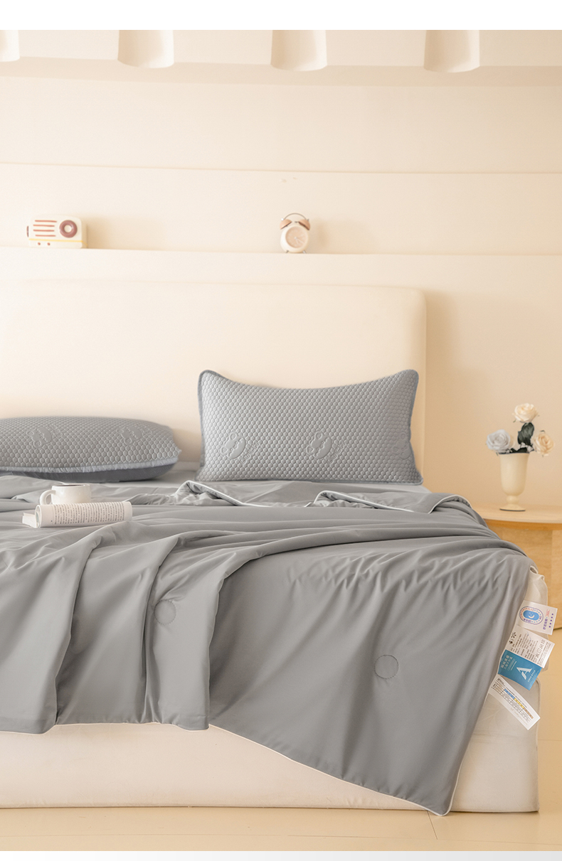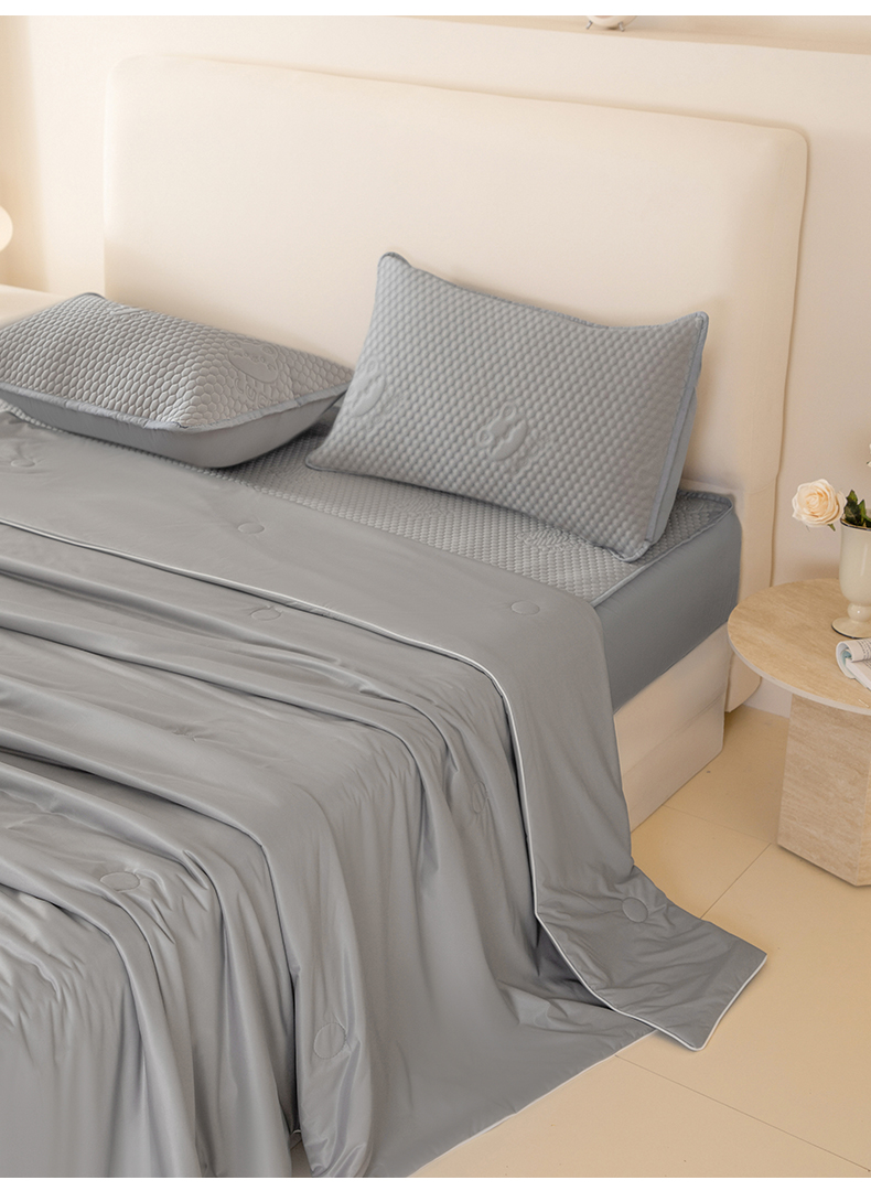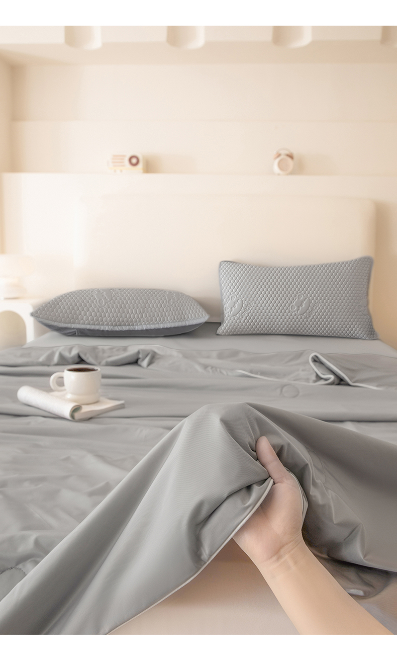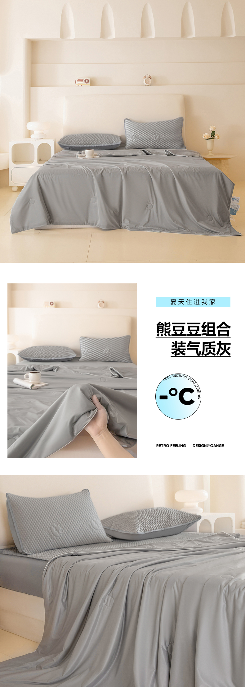 • 91家纺网 家纺一手货源 找家纺 莱登卡奴 2025新款A类凉感丝熊豆豆夏被四件套 熊豆豆组合装气质灰