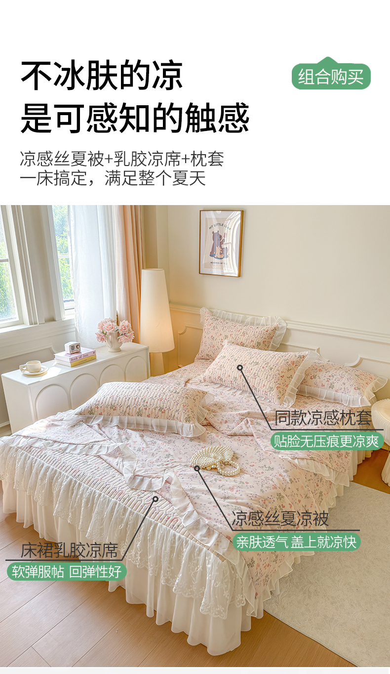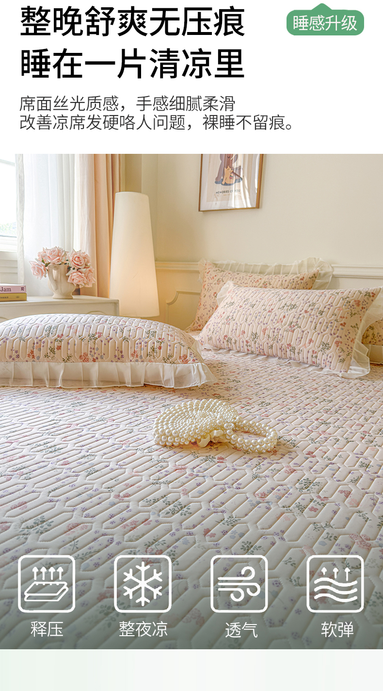 当前位置: 91家纺网 > 商品网购 > 床上用品 > 凉席 > 乳胶凉席 > 网红馆(ck家纺) 2025春夏新款印花凉感丝乳胶床裙凉席空调席夏被空调被 花样年华 粉