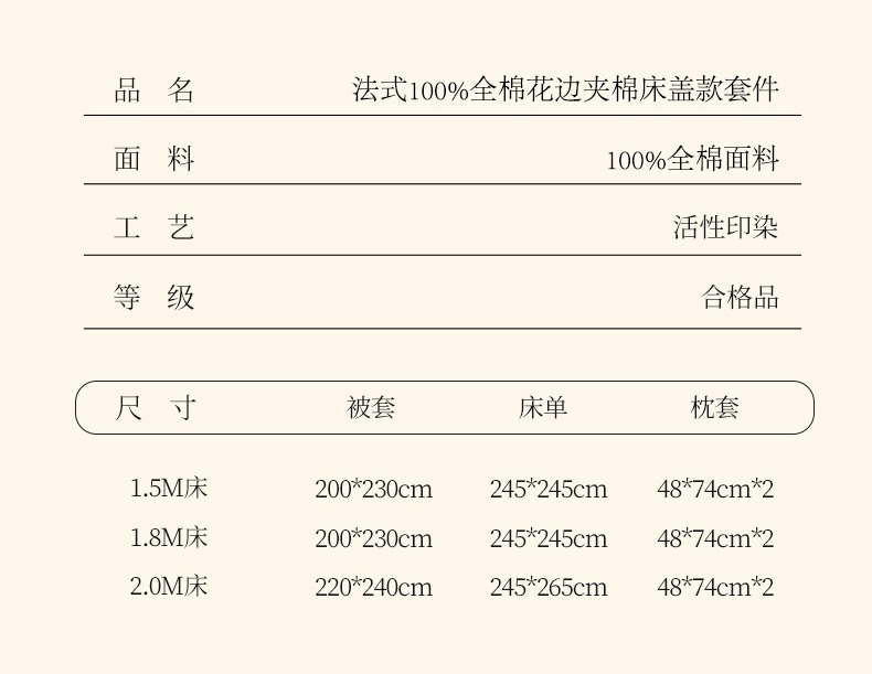 商品名称:(总)2025新款法式全棉花边夹棉床盖款四件套