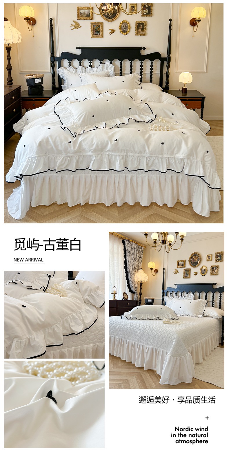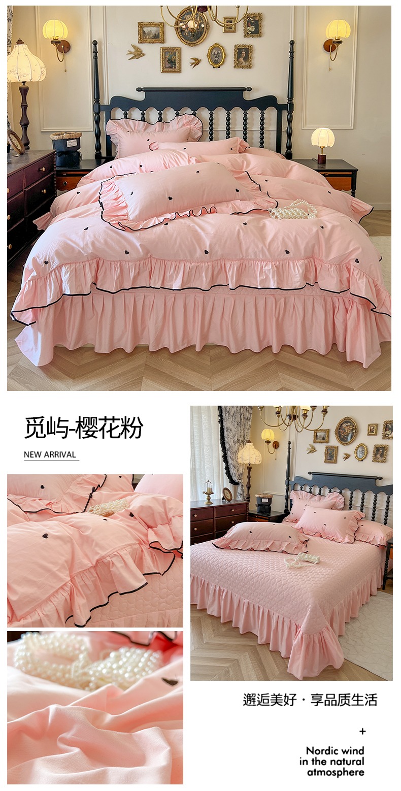 (总)2025新款法式全棉花边夹棉床盖款四件套
