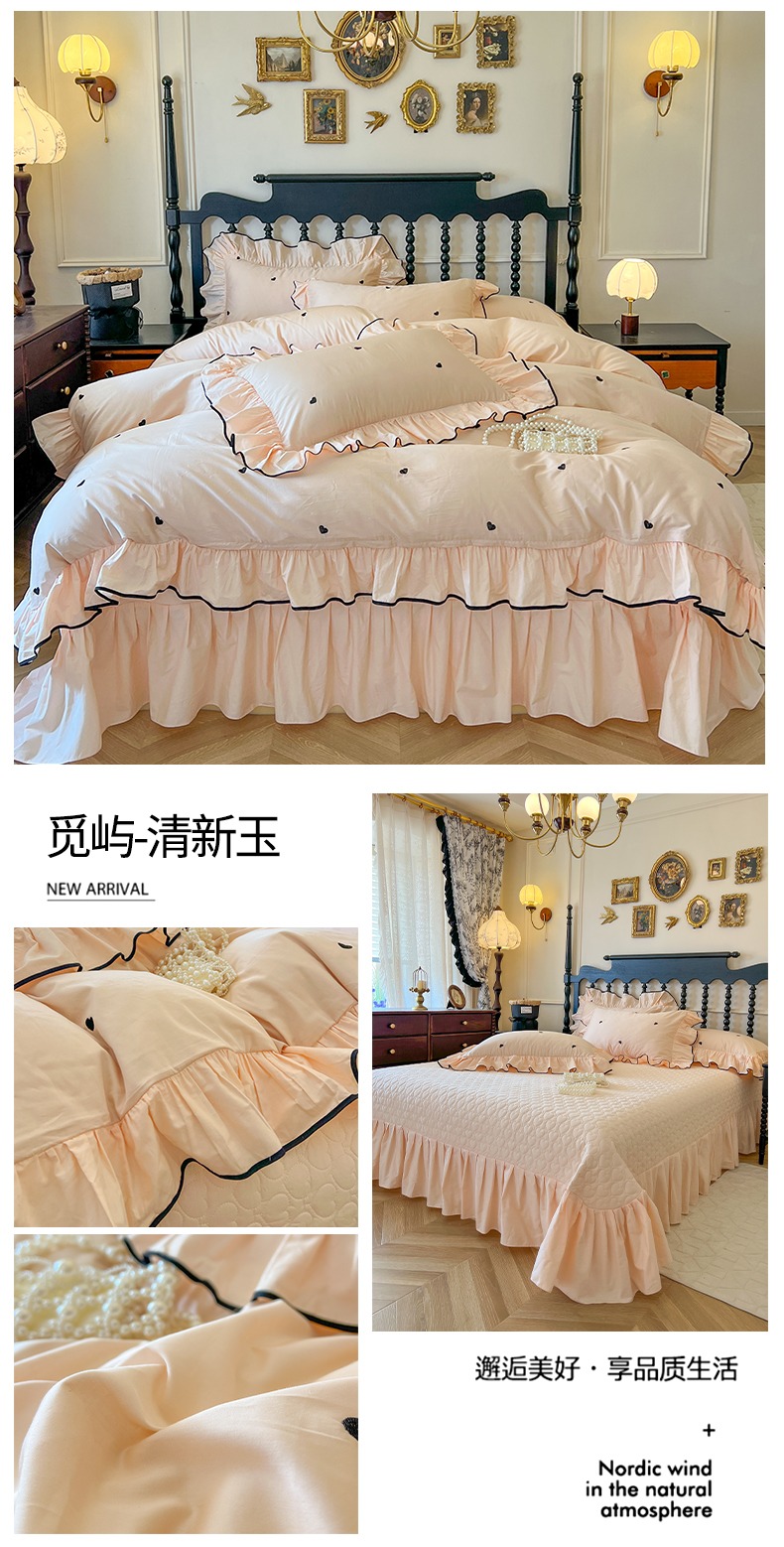 (总)瑞宝 2025新款法式花边全棉贡缎提花床裙款四件套-梦之语(控价265起),梦之语-蜜粉,梦之语-奶油白,梦之语-青柠绿,梦之语-香芋紫
