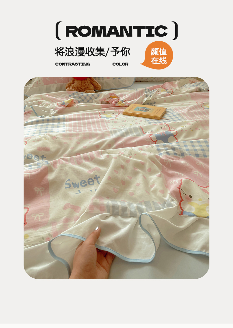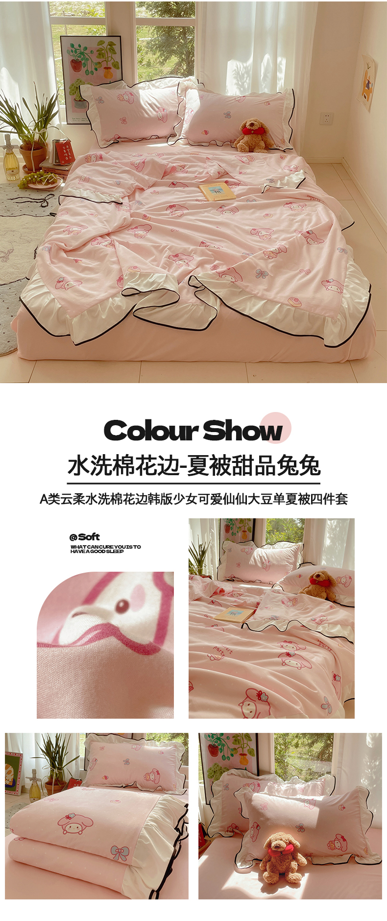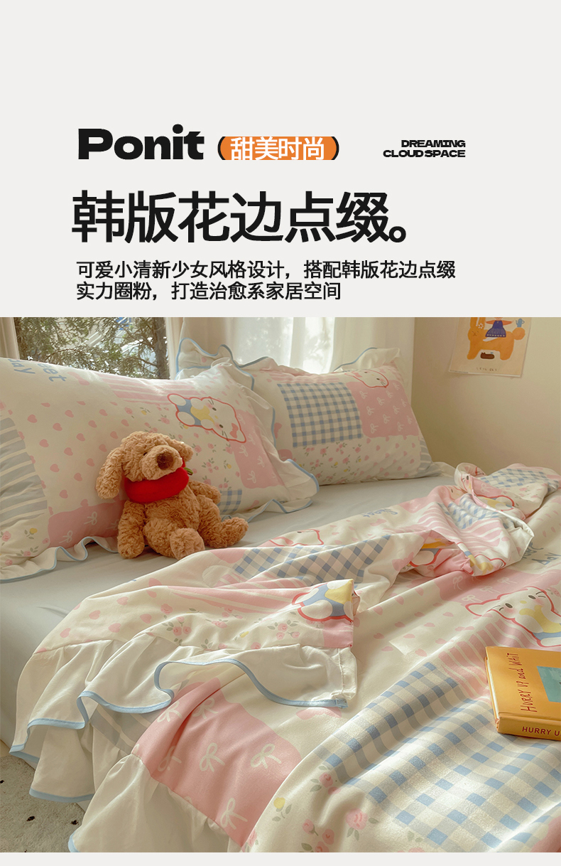 商品名称:(总)桃心家居 2025新款A类云柔水洗棉花边韩版少女可爱仙仙大豆单夏被夏凉被空调被四件套