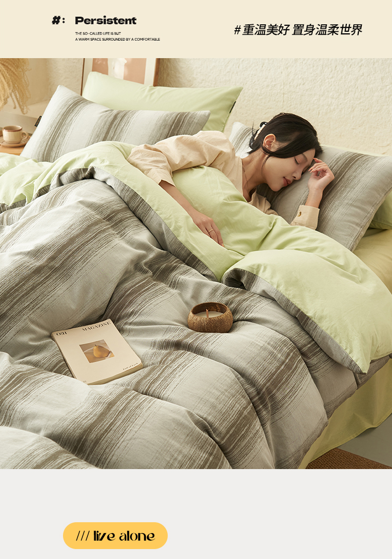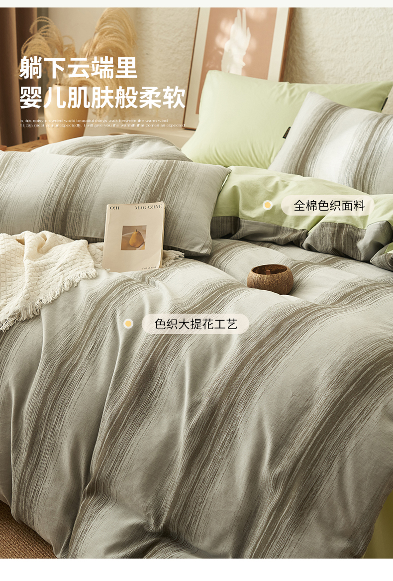 当前位置: 91家纺网 > 商品网购 > 床品套件 > 四件套 > 全棉普通四件套 > 趣色家纺2025新款高密织色织大提花全棉四件套 西雅-绿