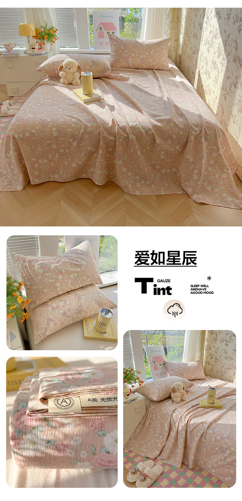 当前位置: 91家纺网 > 商品网购 > 床品套件 > 三件套 > 韩巢家纺 2025新款云感提花双层纱床单被单枕套三件套 爱如星辰