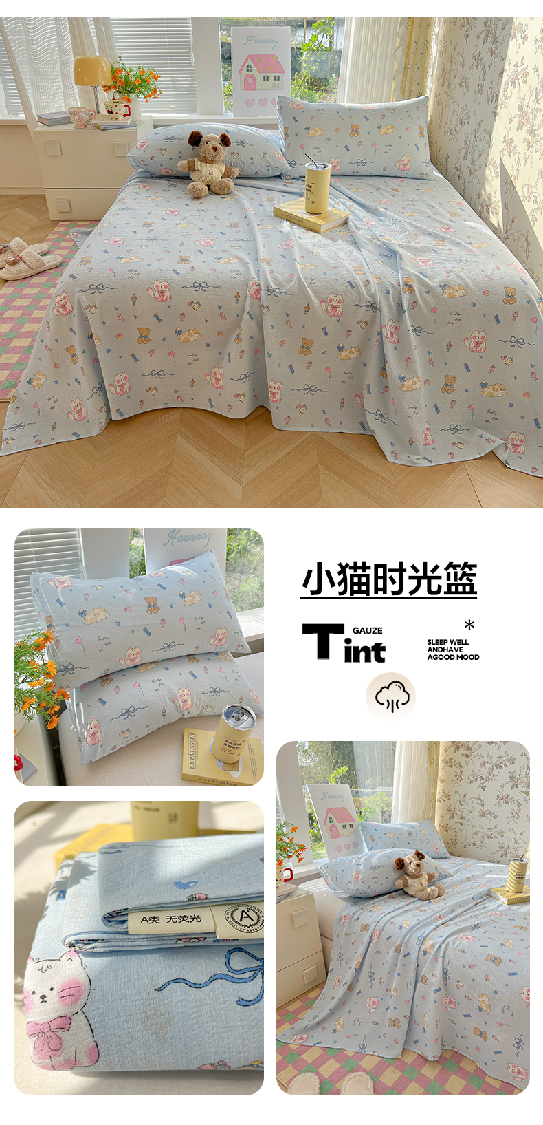 当前位置: 91家纺网 > 商品网购 > 床品套件 > 三件套 > 韩巢家纺 2025新款云感提花双层纱床单被单枕套三件套 小猫时光篮