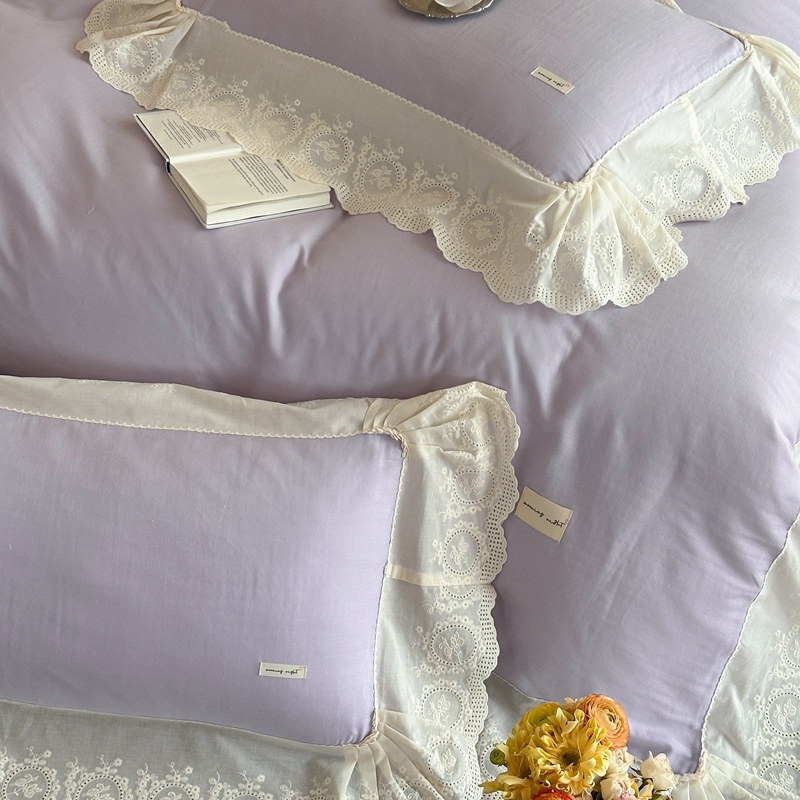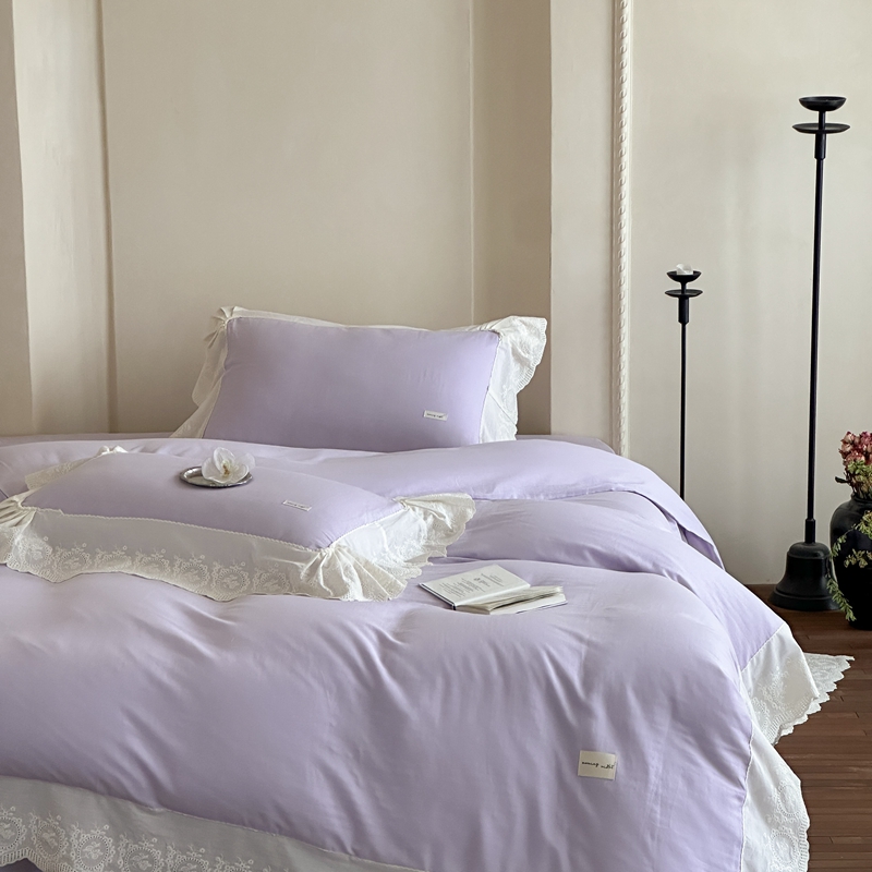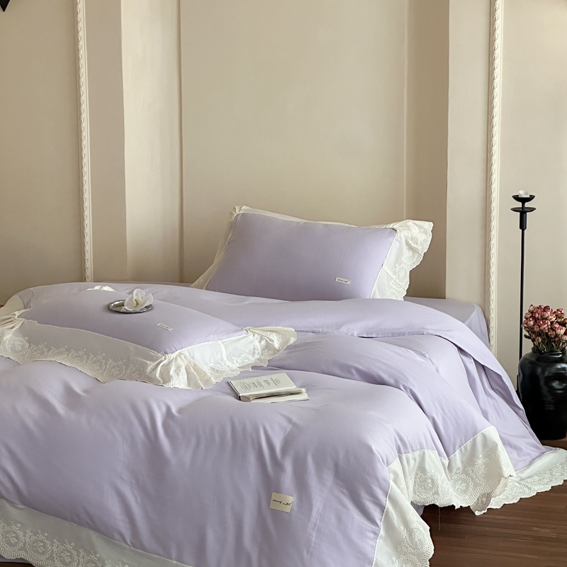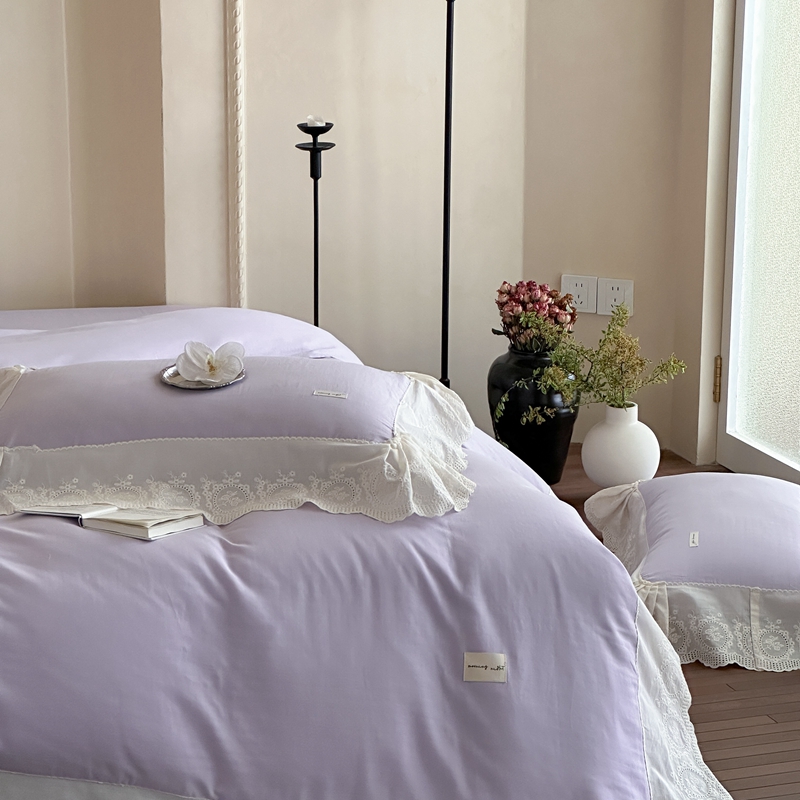 商品名称:小春日和 2025新款法式纯棉双层纱A类公主风四件套儿童婴幼儿被套纯色床单1.8床笠加大床单 雪青紫
