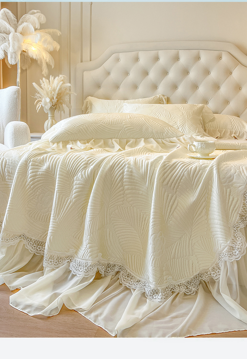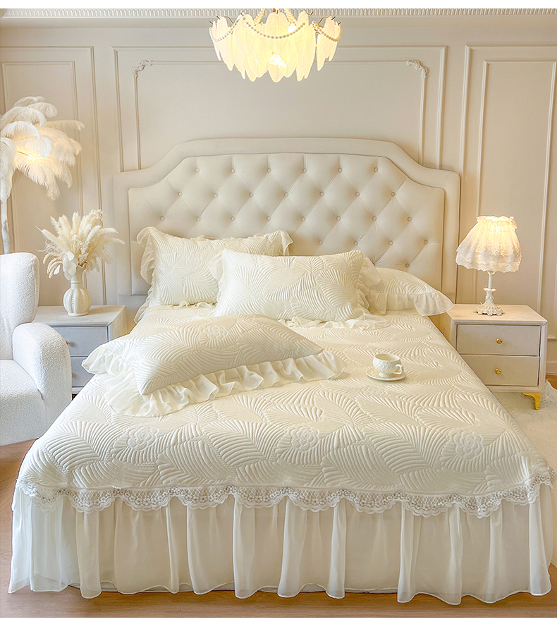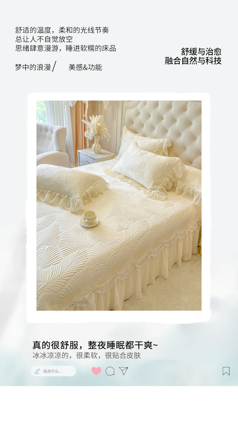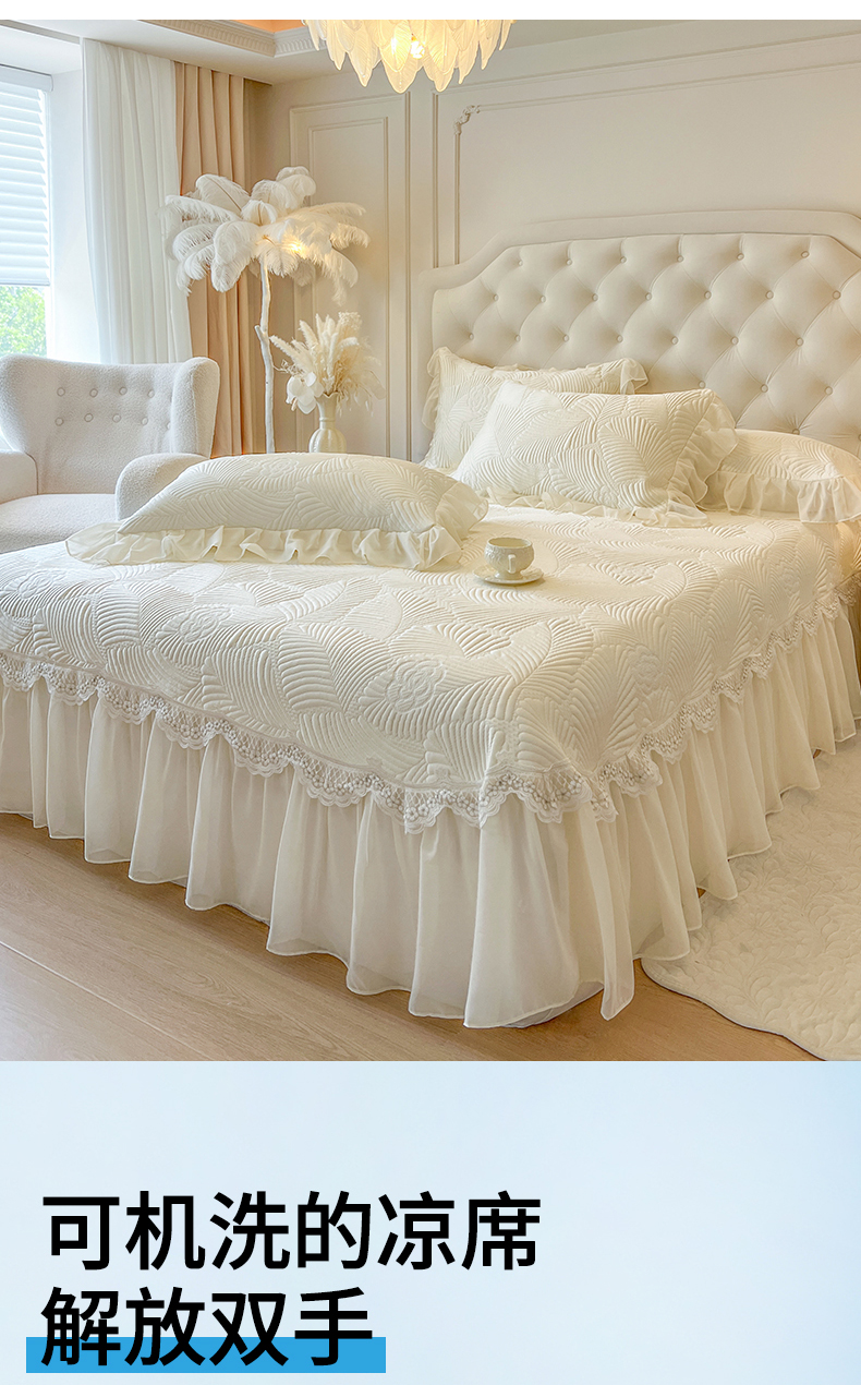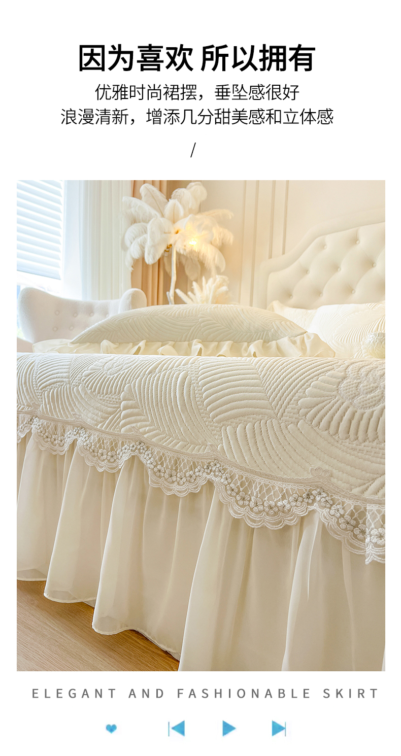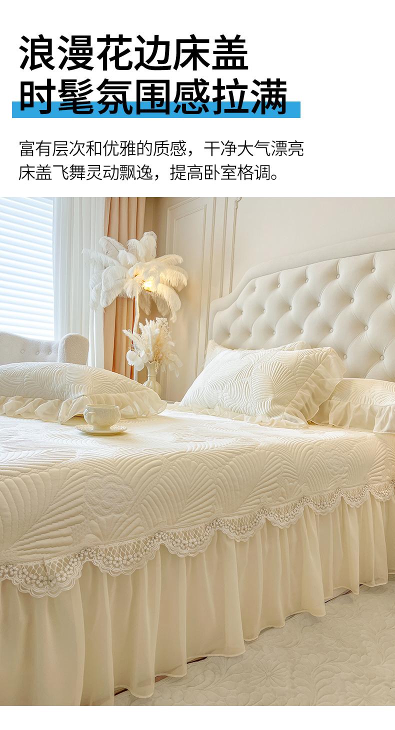 (总)网红馆(ck家纺) 2026新款喜芙棉蕾丝夹棉蜜芙蕾床笠,冰清蓝,豆蔻绿,奶油白,凝脂玉,雾灰,樱花粉