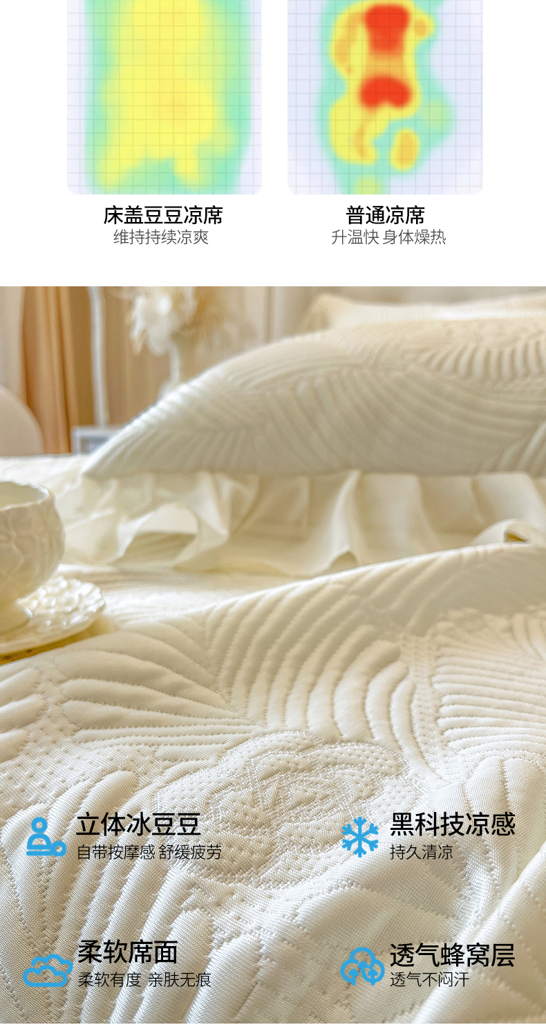 商品名称:网红馆(ck家纺) 2025新款床盖款豆豆席凉席席子-花叶海 花叶海-米色