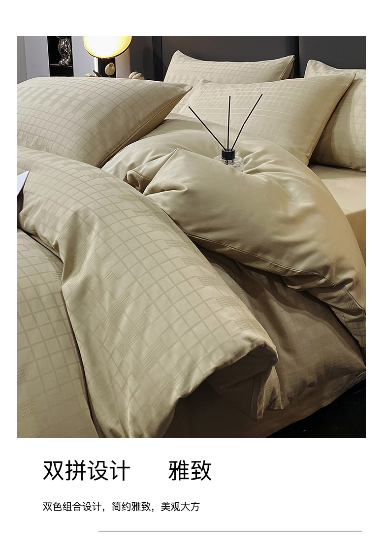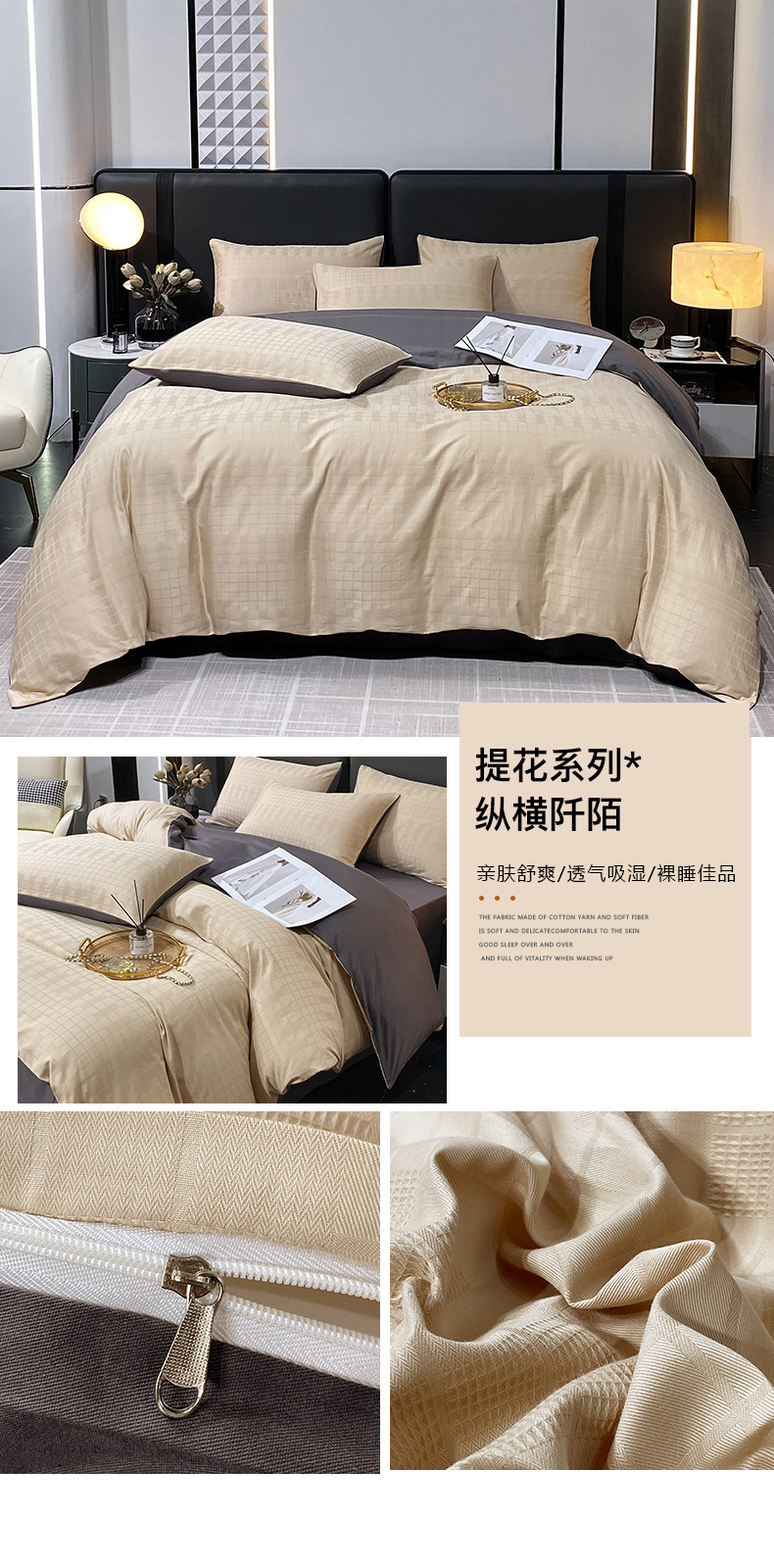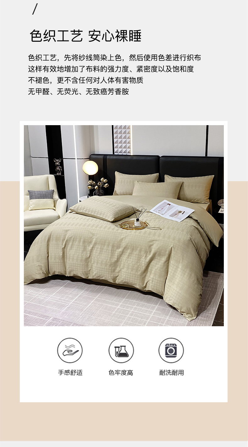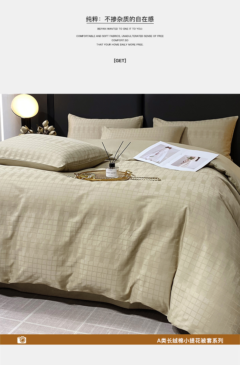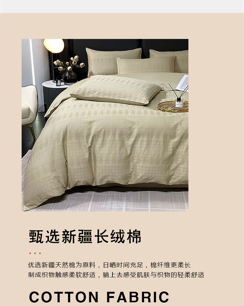 金鑫汇家纺 2024新款长绒棉提花小方格系列四件套单品系列-单被套 风吹麦浪