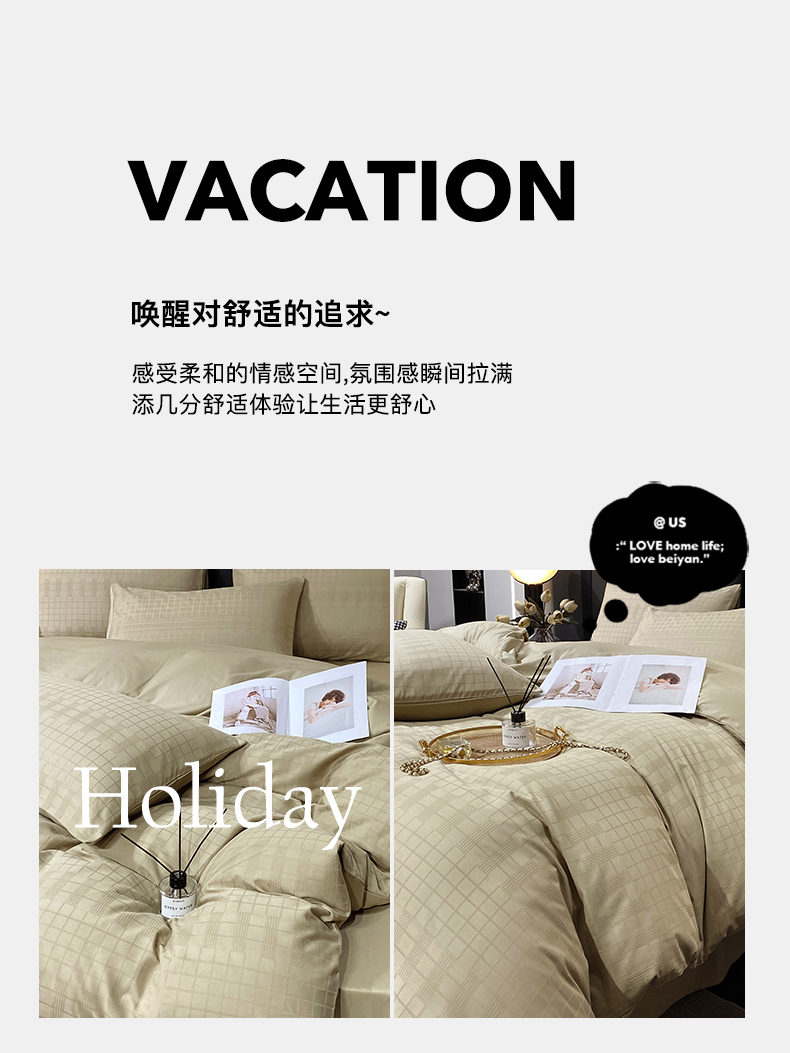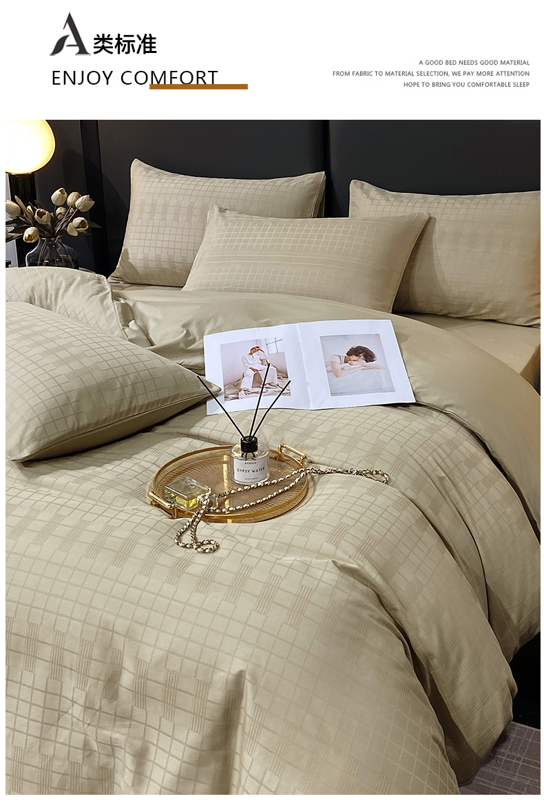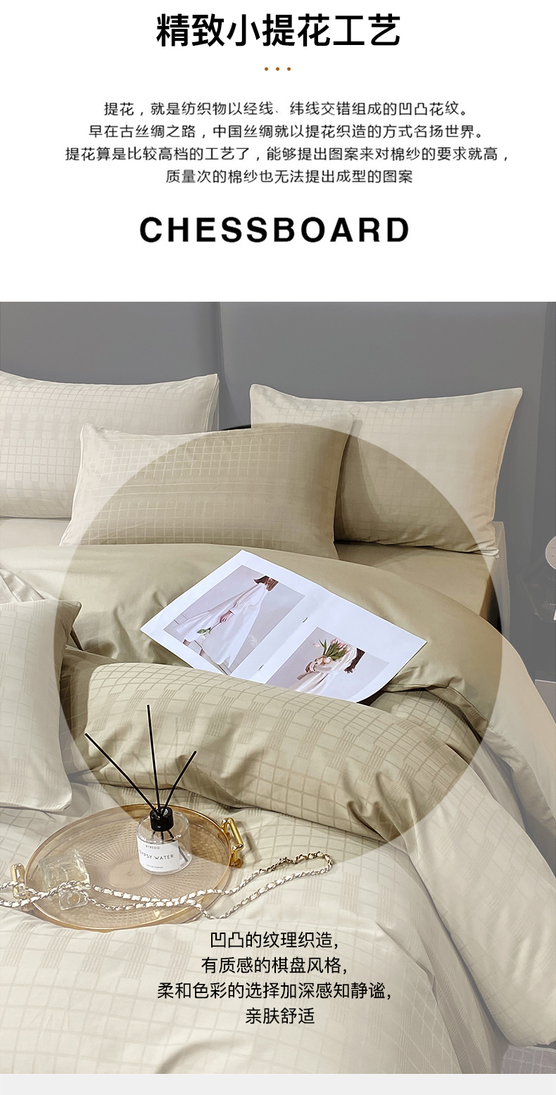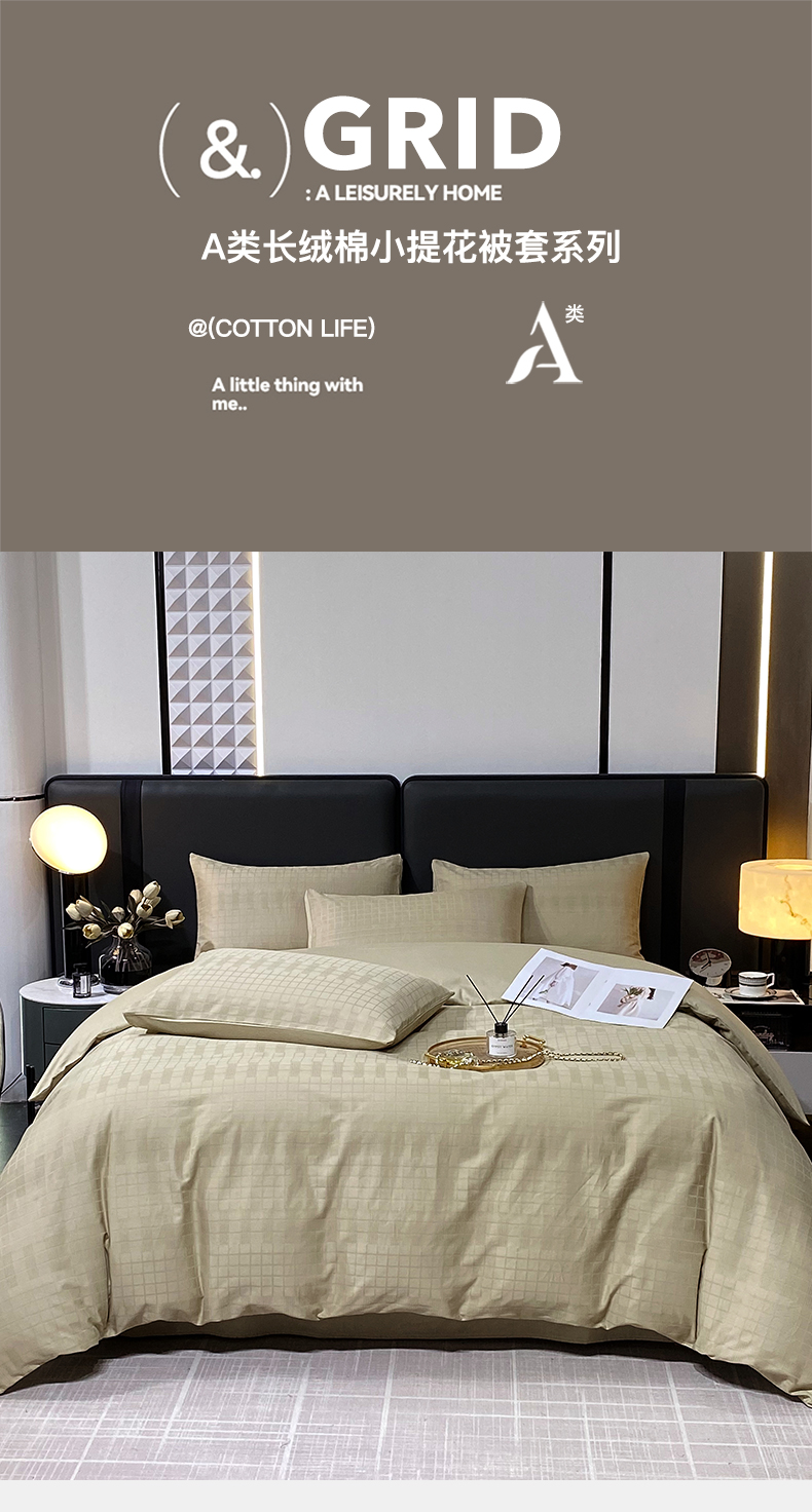 金鑫汇家纺 2024新款长绒棉提花小方格系列四件套单品系列-单被套 风吹麦浪